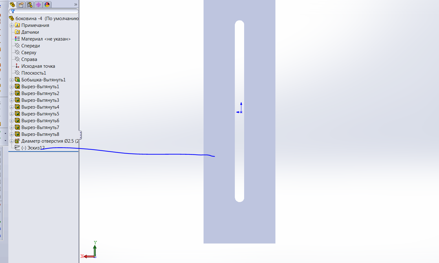Вокруг детали синий круглый эскиз, галочкой - "Погасить" он скрывается, а вернуть его уже нечем.