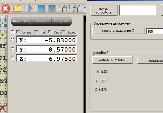 На скрине выше видно, одновременное подключение к контроллеру и моей программки, и оригинальной управляющей.