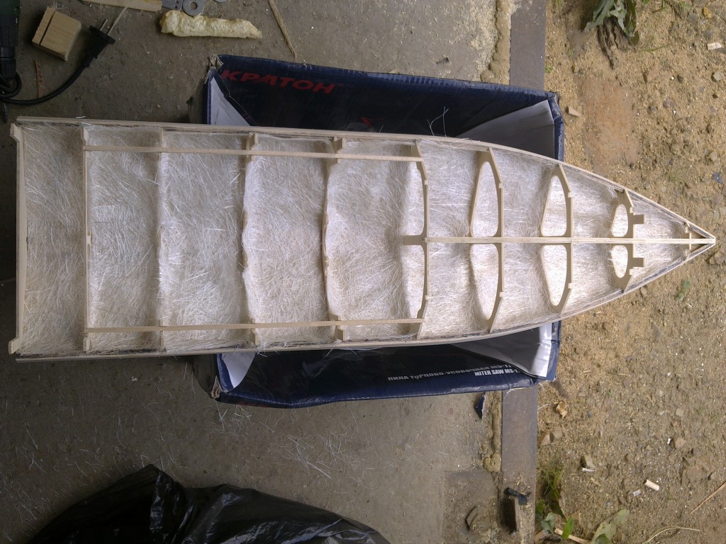 Постройка катера из фанеры, обтянута стеклом, покрашена и покрыта лаком.