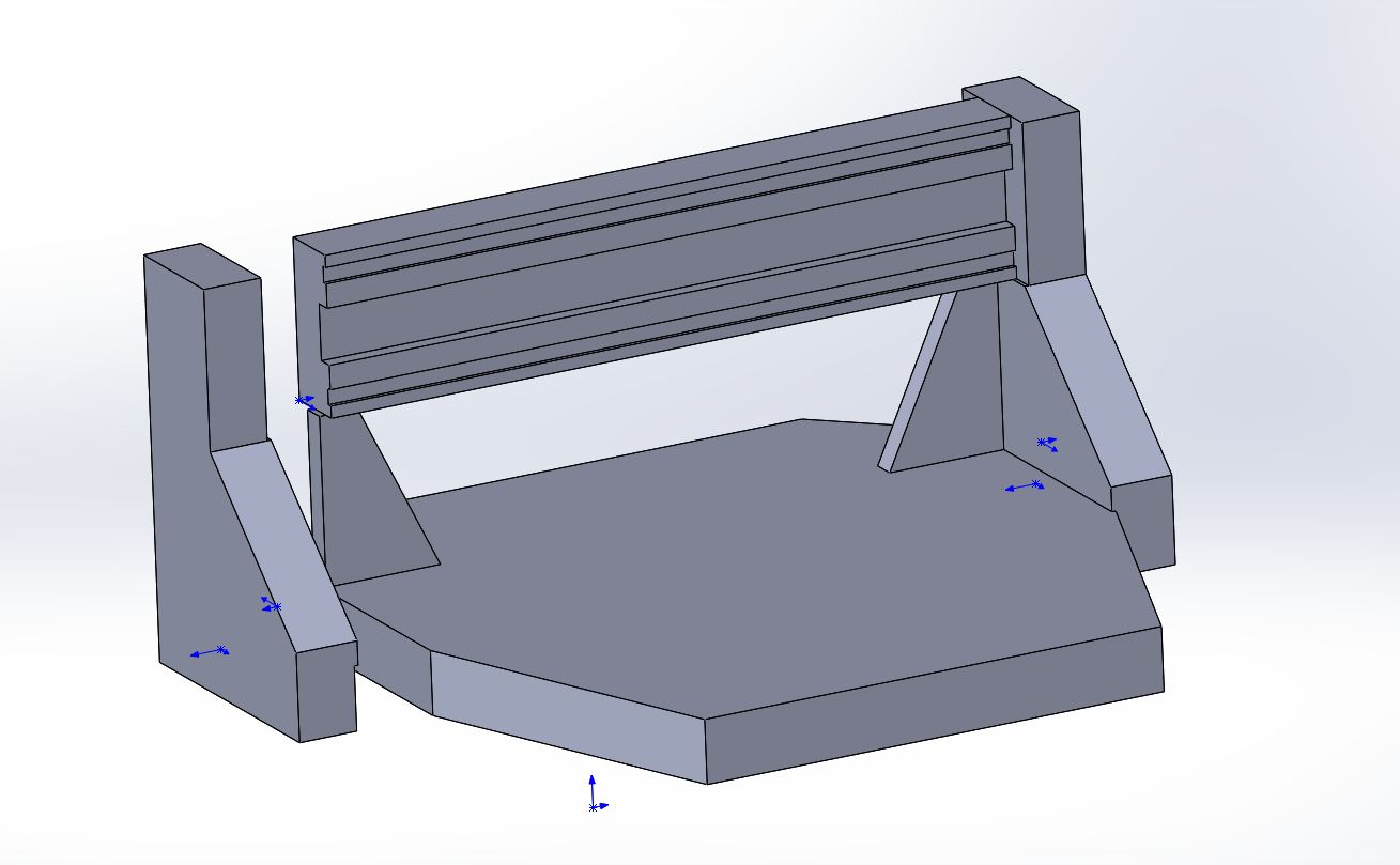 Вот с моделью хуже. Уже каждый болтик на основании нарисовал, а как Z укомпановать так и не выдумывается. Учитывая стойки из материала 80мм подрезать их не охота сильно, смысл тогда в таких "быках"? А не подрезая поле получается максимум 560.