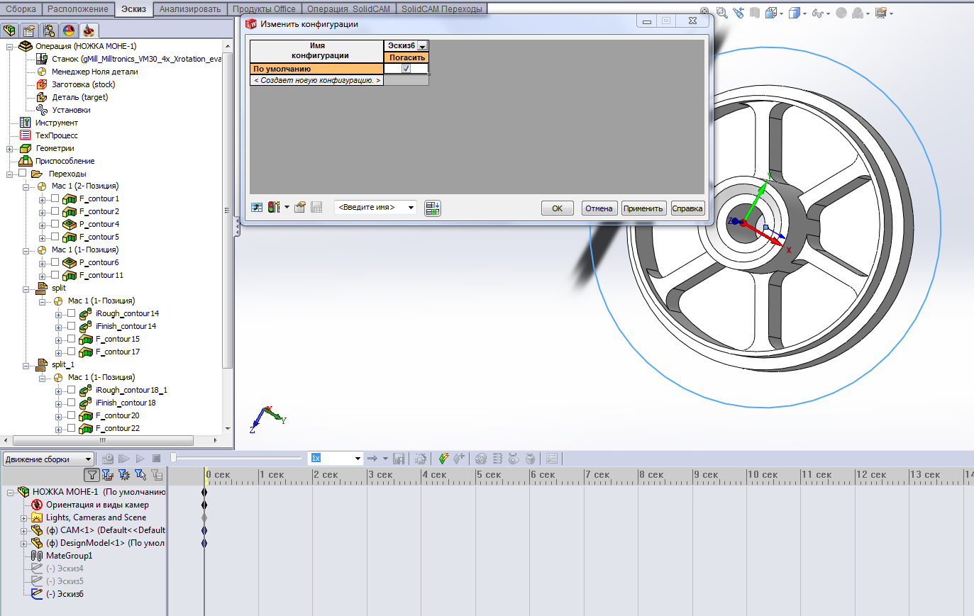 Вокруг детали синий круглый эскиз, галочкой - "Погасить" он скрывается, а вернуть его уже нечем.
