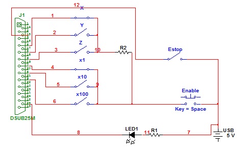 Ну все.E-stop подключен и прописан методом научного тыка, но получилось, все работает. Теперь новая мысля - подцепить на 5 и 6 ось пульта регулировку оборотов шпинделя и скорость подач. Вот тут http://cnc4pc.com/Tech_Docs/guide_for_M ... r_LPT2.htm об этом пишут, но для mach3. На EMC2 наверное тоже можно придумать.
