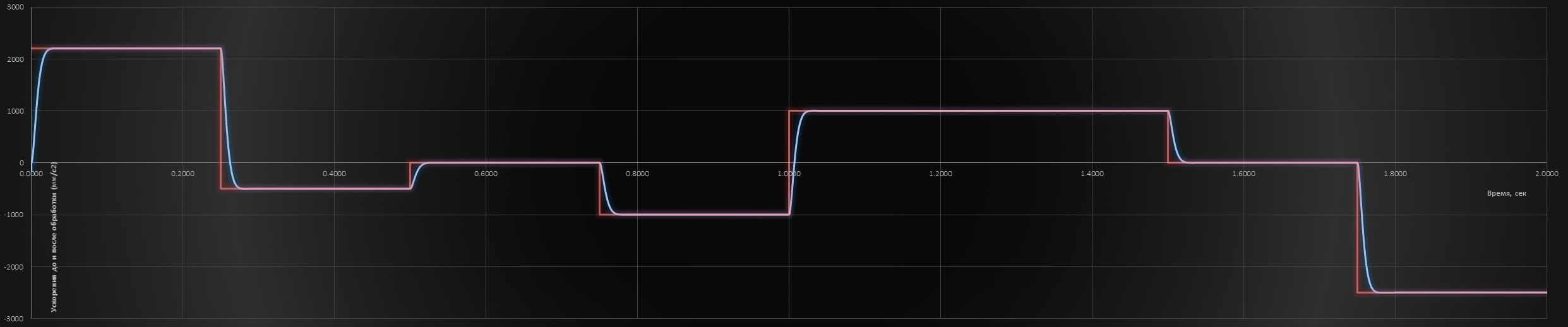 Я думал это график скорости, на выходе ПИ регулятора когда дир переключается. Хотя при изменении скорости на фронте мы и видим ускорение. Ускорение это же изменение скорости.