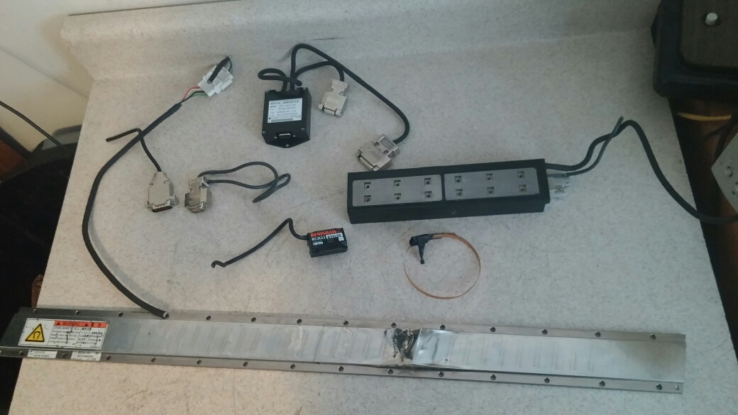 Это ось на станке была ударена при разгрузке или кто-то побил молоточком полоску магнитов (повреждение только в водном месте, см фото), сам мотор и энкодеры остались целыми.