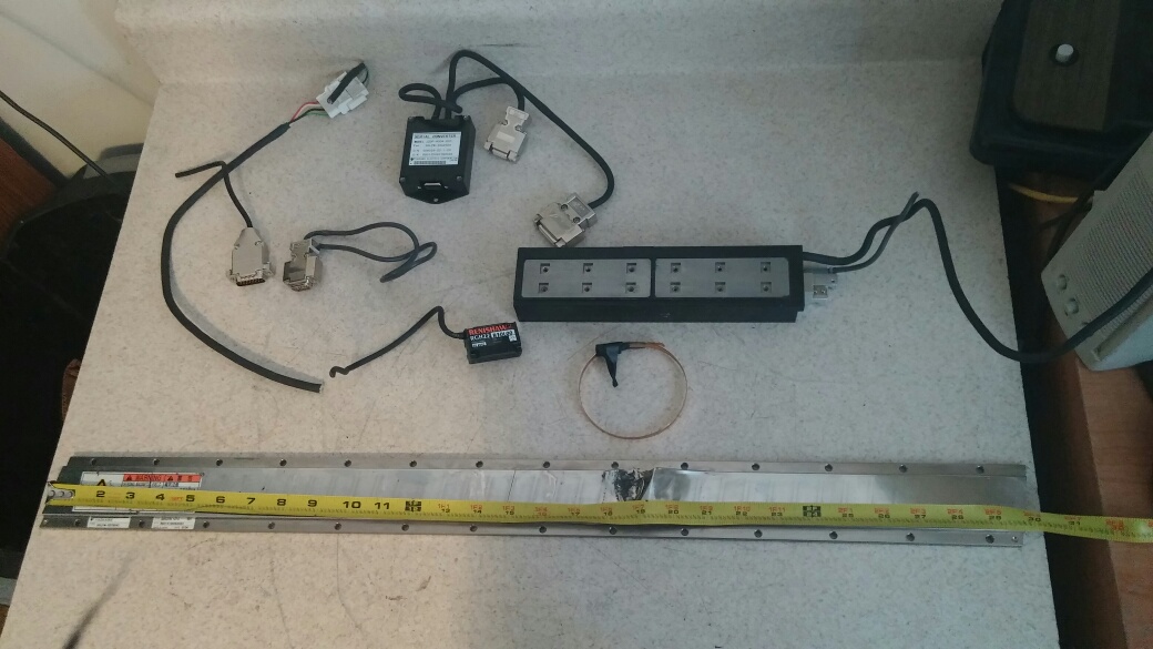 Это ось на станке была ударена при разгрузке или кто-то побил молоточком полоску магнитов (повреждение только в водном месте, см фото), сам мотор и энкодеры остались целыми.