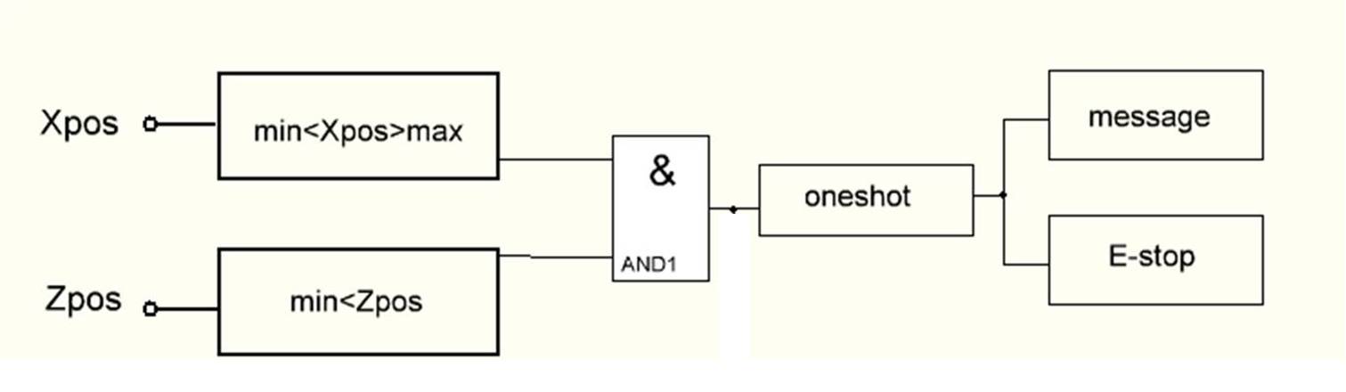 С G-кодом понятно, тут он по программе работает и одного Estop достаточно. Программа прервалась, все остановилось и дальше на сцену выходит оператор. Он сбросил аварию и начинает гонять робот в ручном режиме. И вот тут подводный камушек затаился. Пока робот не выйдет из запретной зоны, повторно авария не сработает. Поэтому хочется сделать защиту от дурака.