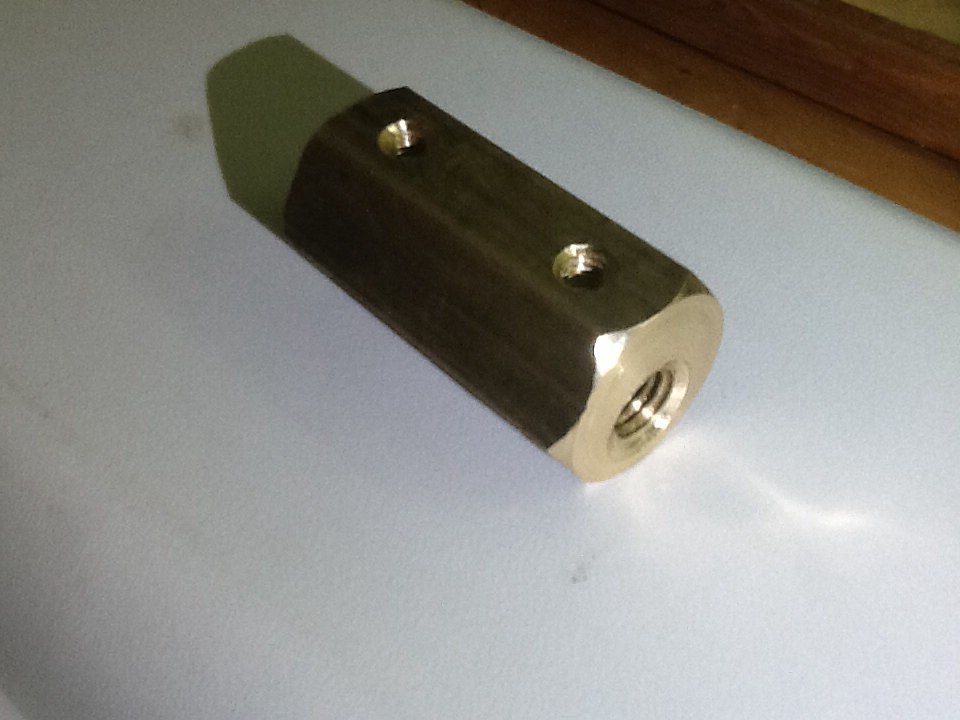 Дело в том, что когда понадобилась бронзовая деталь, стал вопрос какой она должна быть формы. Проконсультироваться мы решили у нашего заведующего лабораторией, который специалист в этом деле. Прямоугольник конечно экономичней и проще, но нужно было исходить из того что было.Бронзу нужно было покупать на рынке. Прежде чем пойти на рынок, у нас было несколько вариантов: прокат (стержень нужного диаметра), труба, шестигранник размером под ключ 24-28, прямоугольник (токарь сразу сказал что вероятней всего шестигранник). Прихожу я на рынок, и как раз шестигранник 24 мм под ключ и был.