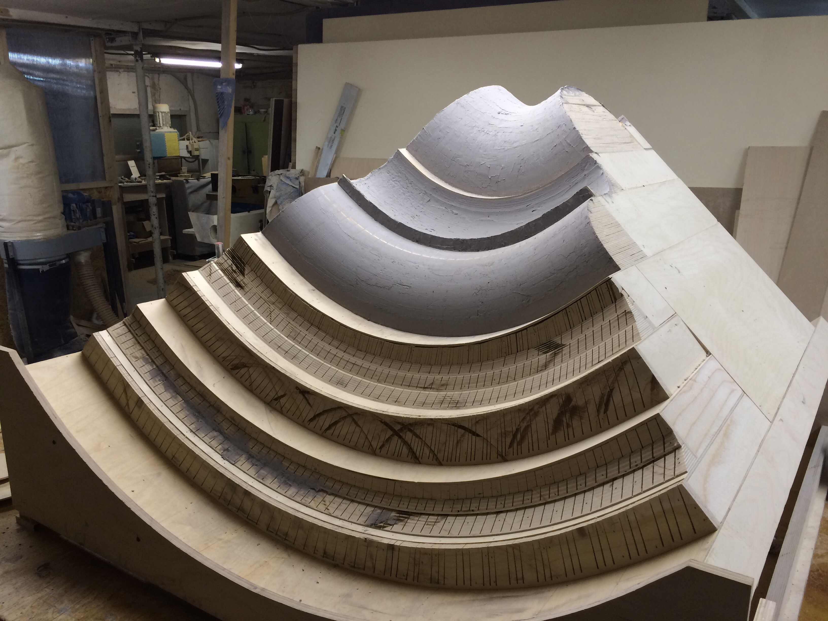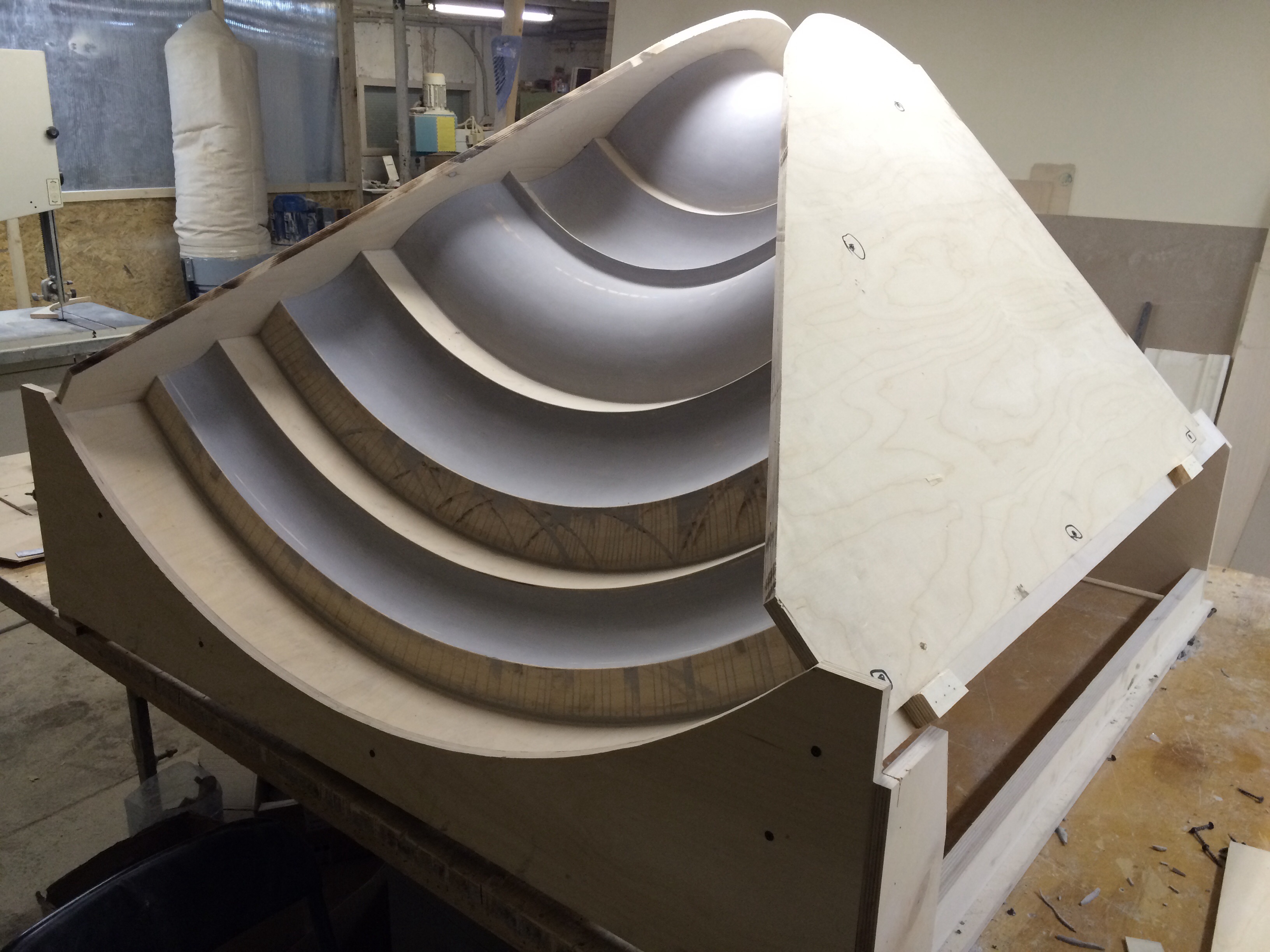 мы делали четверь формы для литья большой чаши фонтана из искуственного камня. примерно 2.5 метра диаметр и больше метра высота.
