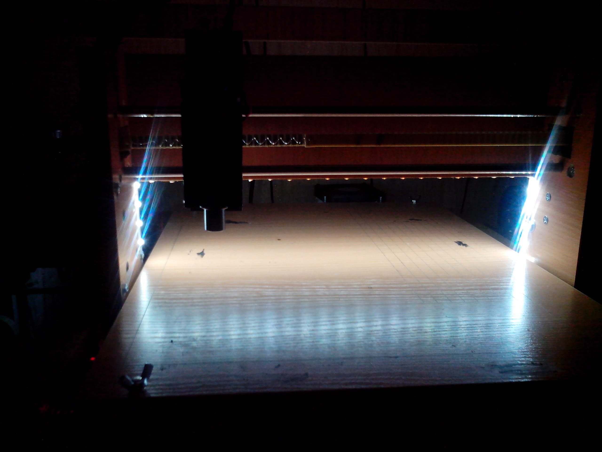 Сделал подсветку под порталом оси Х. Так как станок стоит в старой антресоли от мебельной стенки, внутри темновато и плохо видно. Теперь очень удобно, все подсвечивается.