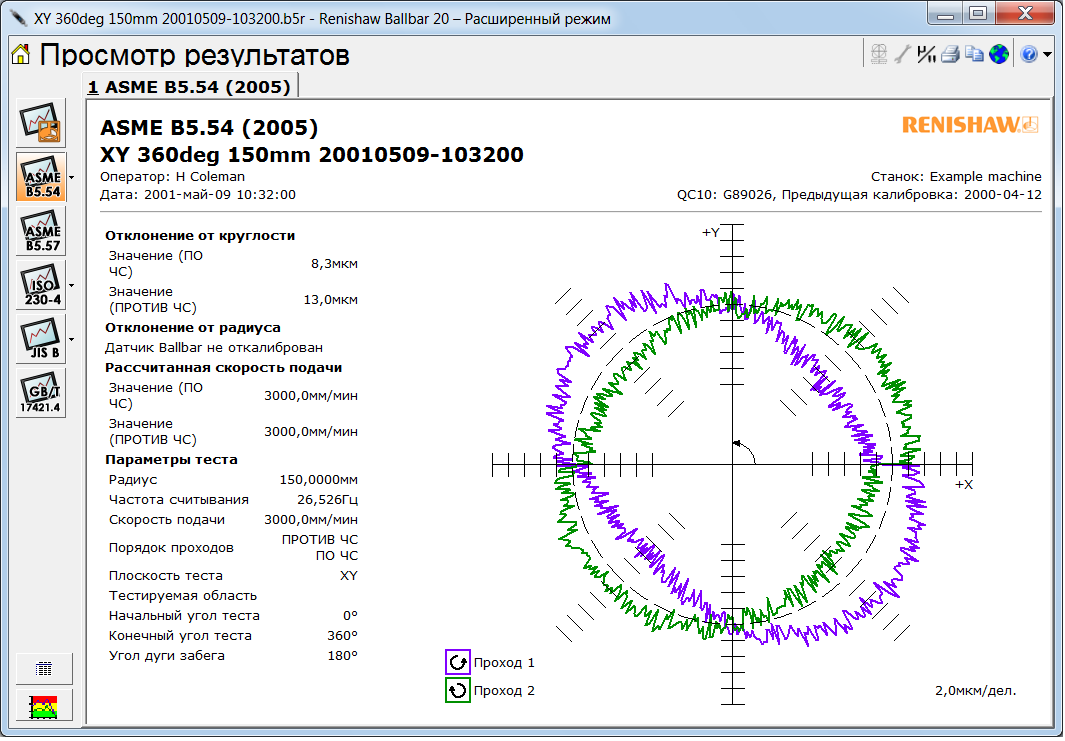 Подключил BallBar к Solatron C53 и у меня показывает прибор ход 10.4мм