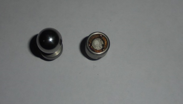 Шарик похоже приклеен к резьбе, но не выточен из цельного куска