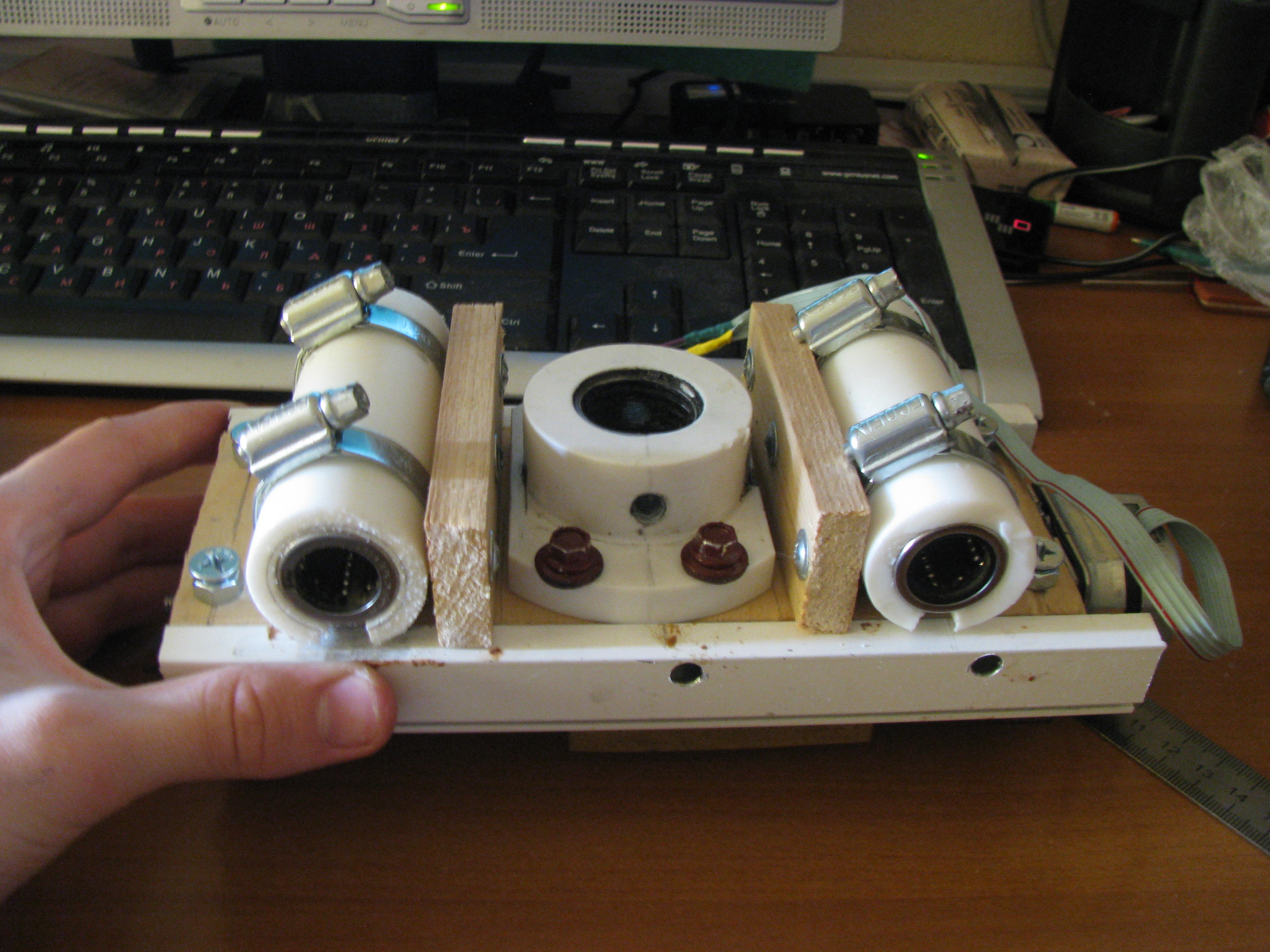 Купил ПВХ трубу внутренним диаметром 20мм, распилил и запрессовал туда линейки KH1630PP. Получилось ОЧЕНЬ крепко, думаю над тем, как жестко закрепить такую трубку на каретке.
