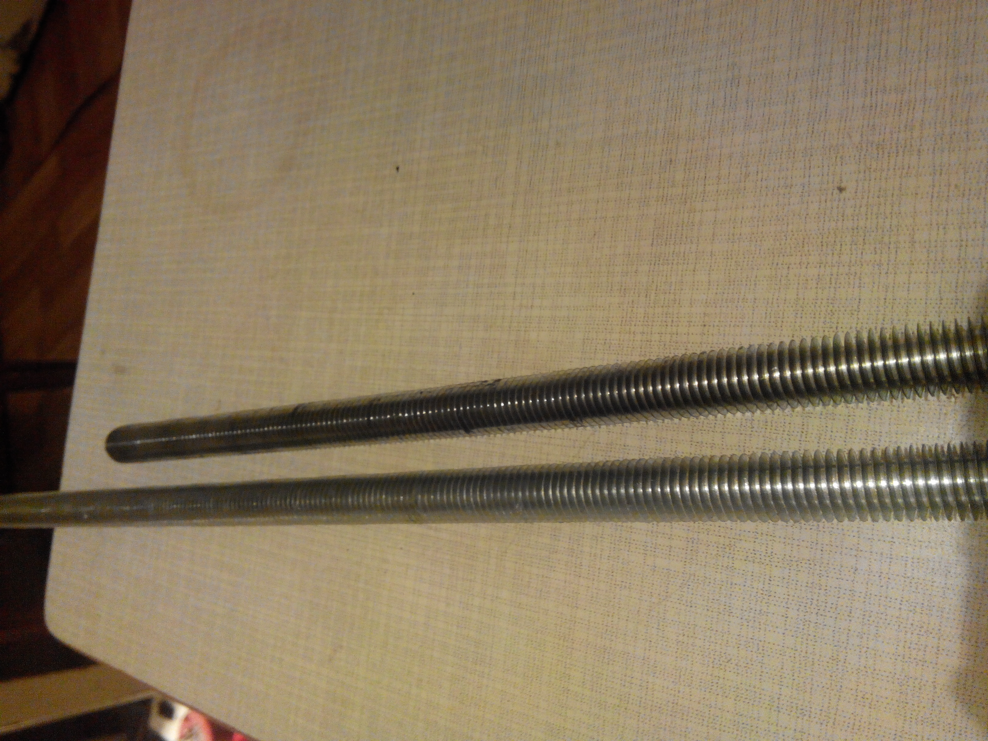 Появился интернет, могу теперь и фото выложить. В общем немного помудровал над осью Z - установил распорки и шпиндель с двигателем, изготовил ходовой винт и гайку. На фото обычная шпилька до и после шлифовки и полировки резьбы.