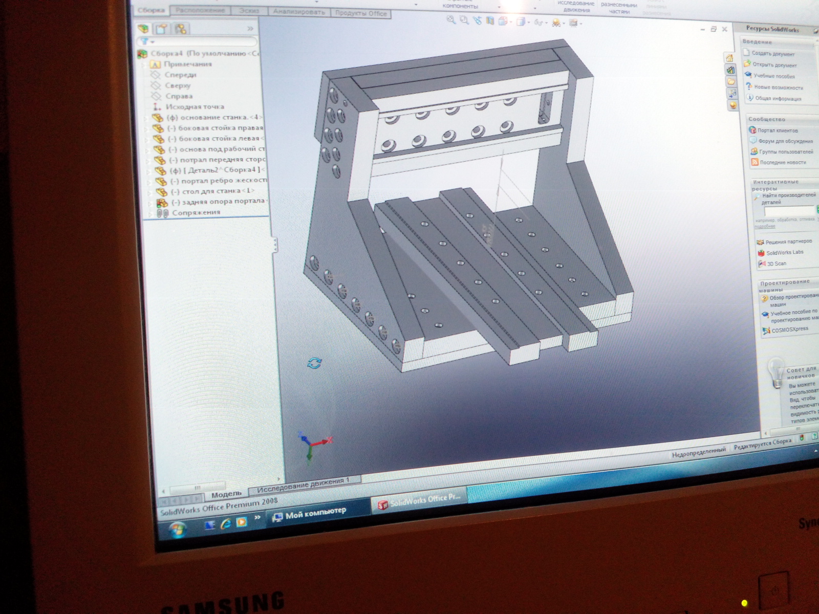прикрепить снизу станины под порталом это как? Имеете ввиду основу привинтить к стойкам портала, вернее не как уменя по бокам стоек, а на основу поставить стойки и снизу крепить?frezeryga писал(а):Жесткость теряется потому что у вас стойки портала получаютса выше на толщину этой плиты а они и так самое слабое место обычно. Лутше прикрутите этот кусок стали снизу станины под порталом.