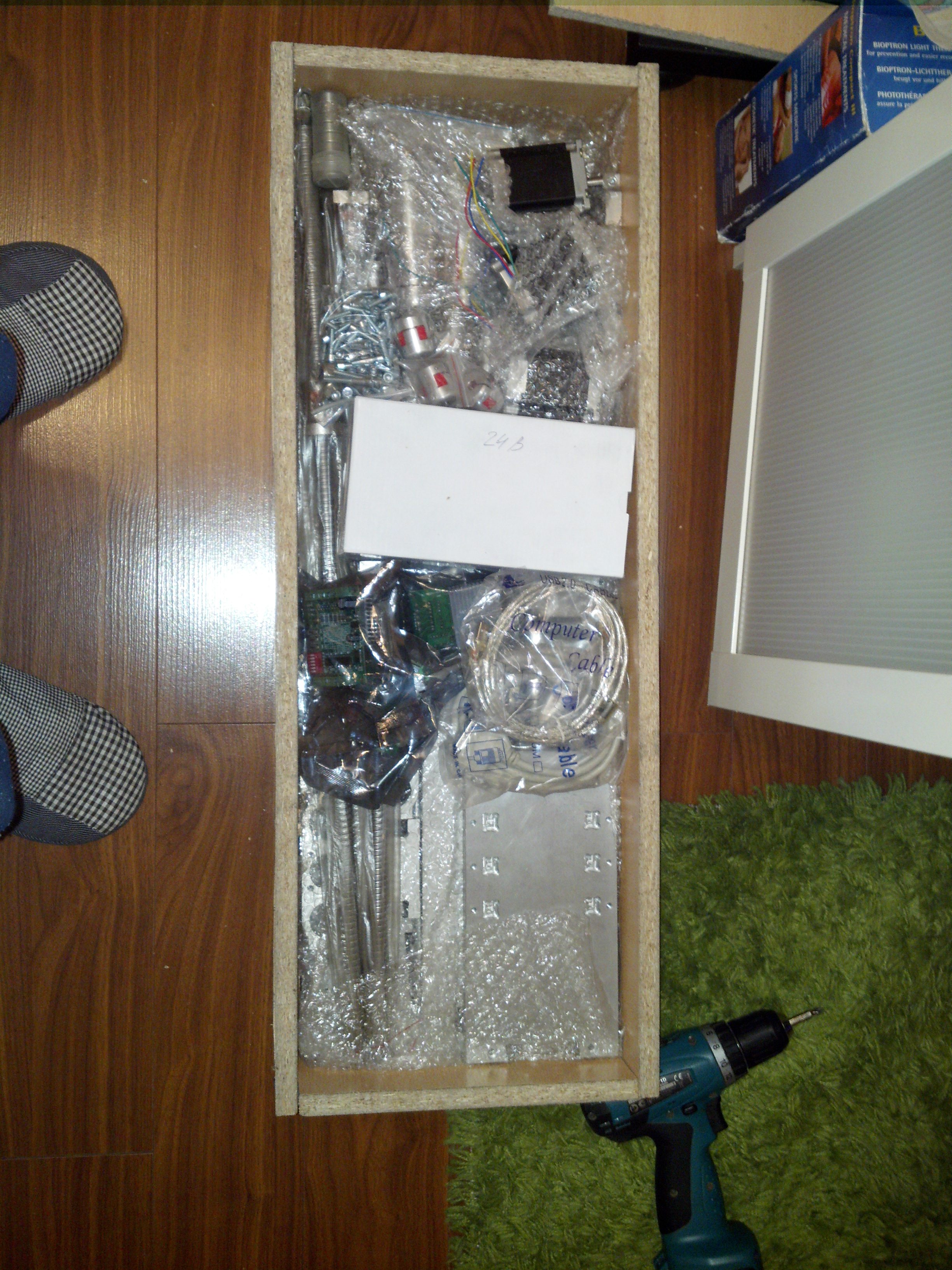 Спасибо Наилю за станочек (А2-К). Получил 15-го вечером. Сегодня уже собрал, достаточно быстро получилось, но при сборке требуется снаровка. Далее буду подключать электрику. Драйвера 6600, красная плата ncstudio + степмастер. Стол буду делать сам, из фанеры, предполагается что станок сам себе вырежет закладные гайки для стола. В качестве шпинделя будет работать дешевый ручной фрезер вот такой http://makita-line.ru/frezer_kromochnyj_MAKTEC_MT372/ 530 вт, 35000 оборотов, подлючить его попробую через диммер.