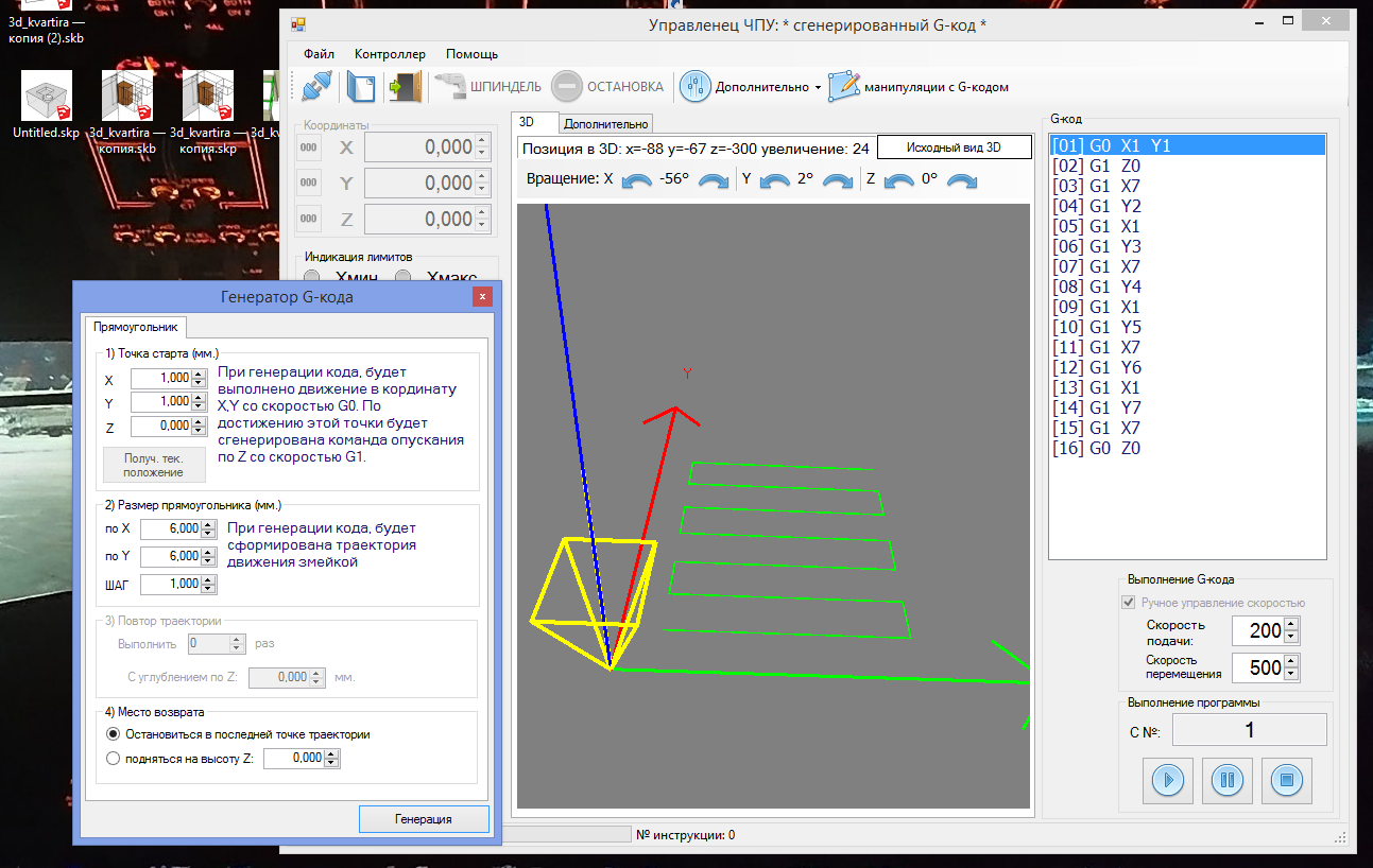 1) Выполнять только выделленый список кодов: 2) Добавил управление с помощью мышки: 3) Добавил маштабирование выполняемого кода, когда нужно выполнить гравировку, в определенной области, (правда это отхождение от правил того как сделано в других программах...