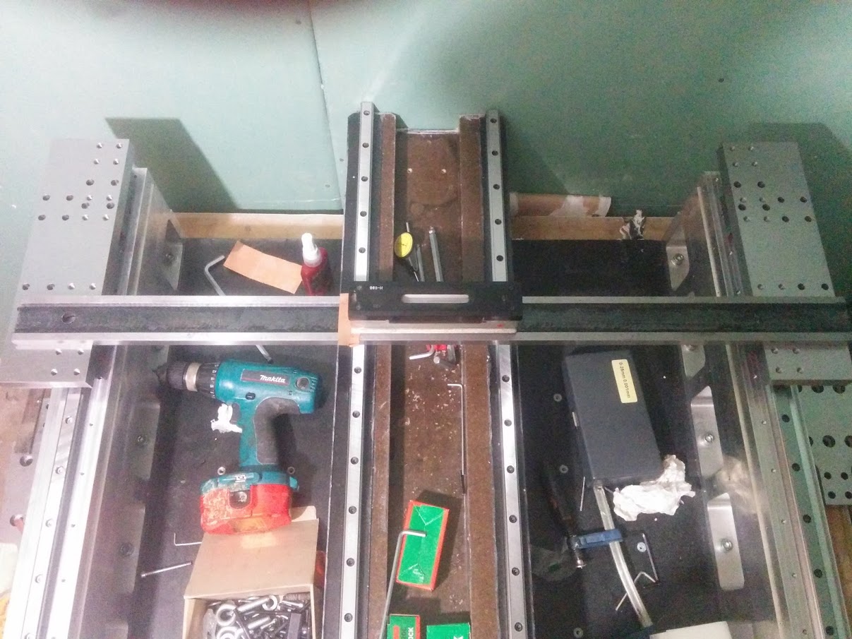 А, ну еще выставил боковые рельсы, и их параллельность: Сори за качество фото, телефон при недостатке освещения снимает не очень, и за сральник вокруг - рабочая обстановка) Если кого что интересует по подробнее - спрашивайте.