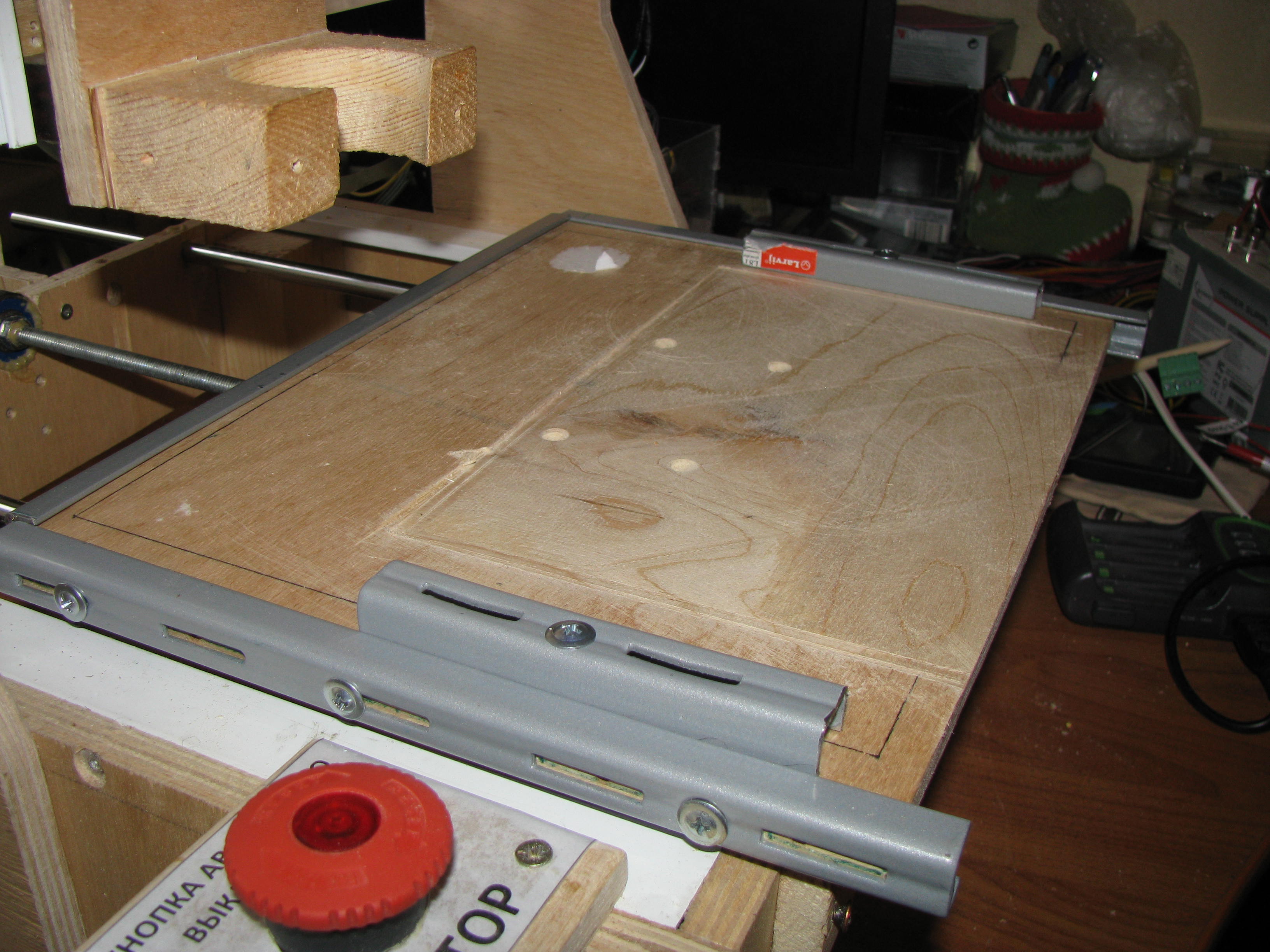 Готово: Теперь закреплю по бокам дюралевый швеллер, к нему же буду крепить и зажимы для заготовок. Опосля начну вырезать из фанеры ось Z.