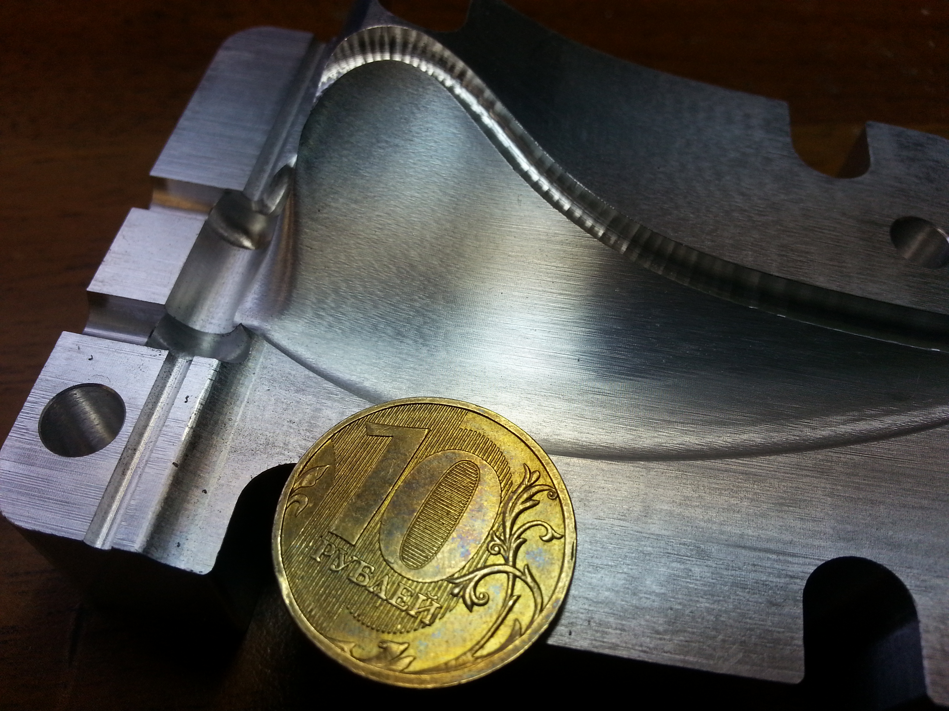 Формочка лопасти воздушного винта. Фреза шарик 1.5мм шаг 5 соток поверхность после фрезы.