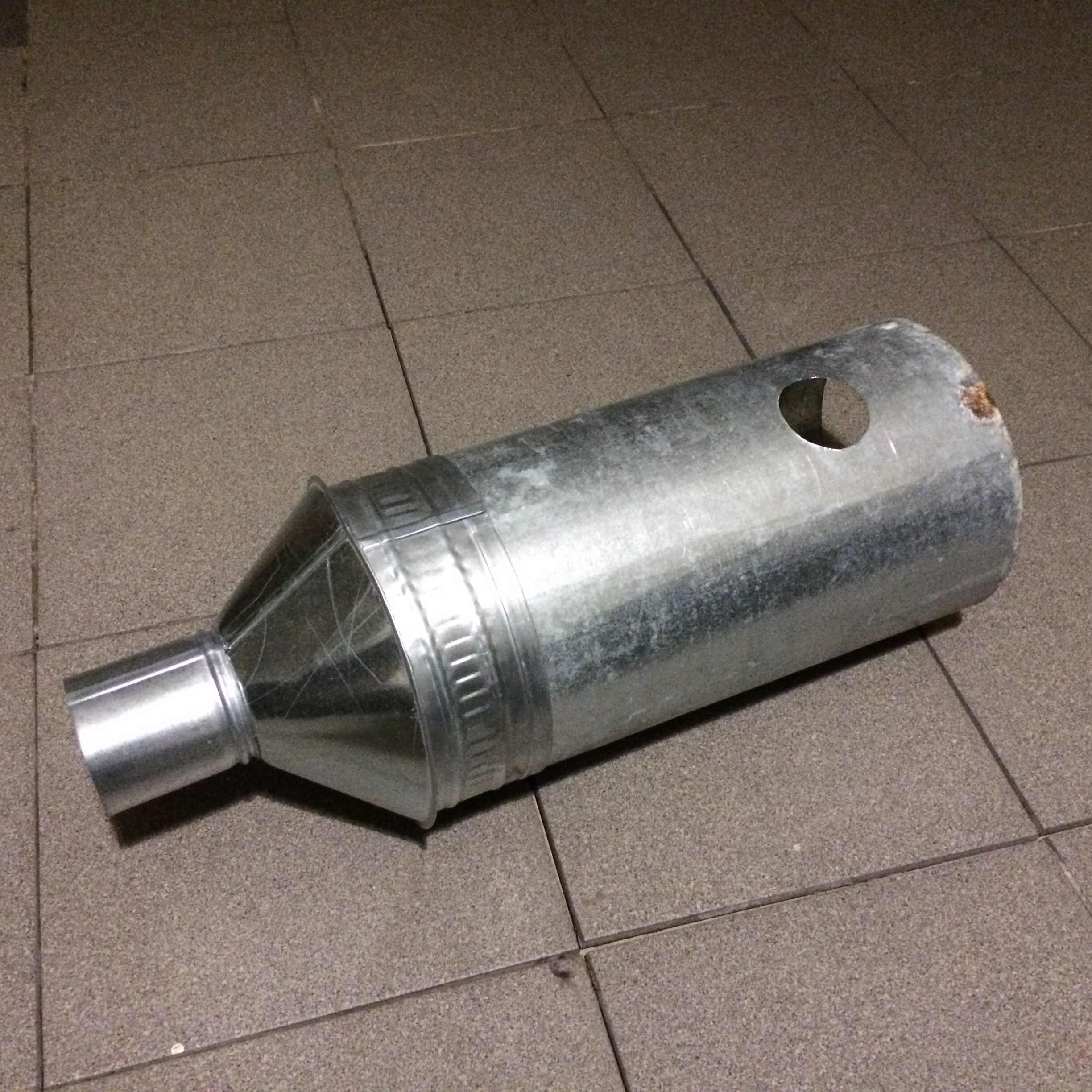 Сегодня был на стройрынке, увидел в продаже воронку для водостока и решил из нее делать циклон. Все удовольствие за железяки получилось 620руб, время потратил всего 30 мин то, что хотел :D получилось не плохо, правда похоже на самогонный аппарат, так это ж два в одном :hehehe: . Будет чем заняться в свободное от работы время :hehehe: