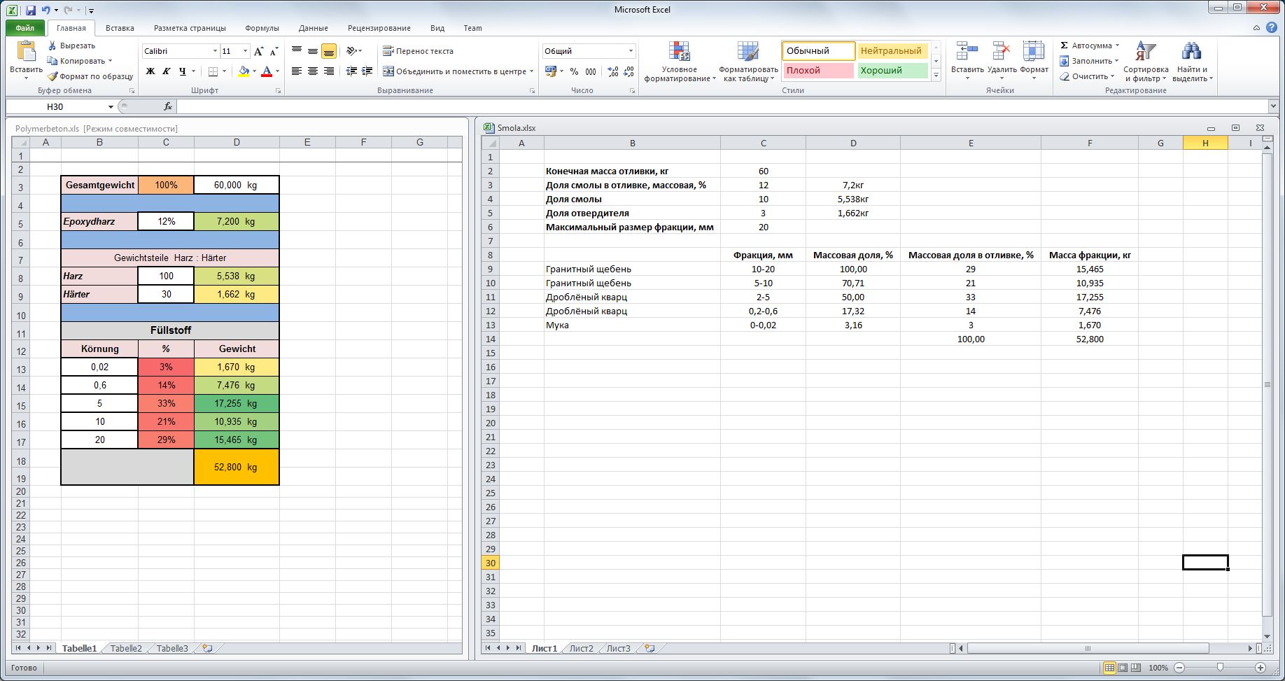 Вот наткнулся на дойчландовскую таблицу в ексэле
