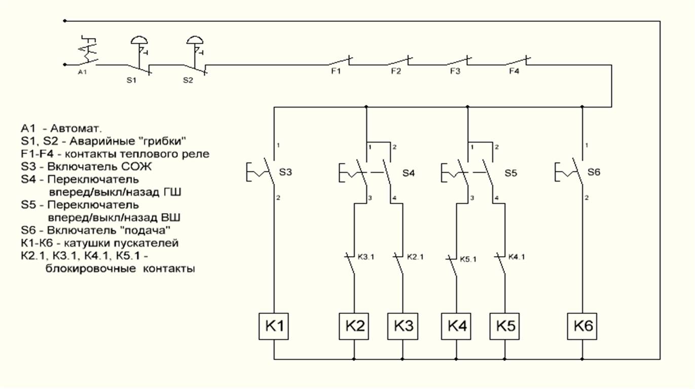 Исправил контакт "Грибка", добавил блокировочные контакты, Исправил переключатели S5 и S6. Эти переключатели типа 2-0-1, на 3 положения. Может я его неправильно нарисовал и сейчас...