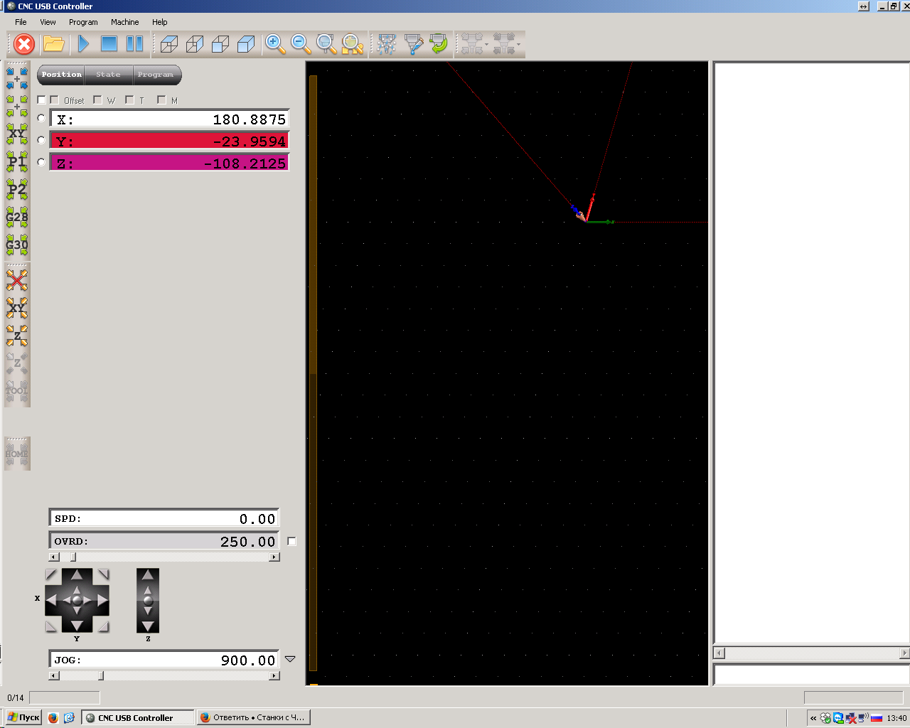 selenur писал(а):В меню программы есть пункт, точно не помню как называется, при нажатии которого появляется окно, с серыми, и красными кружочками, это позволяет сразу видеть какие из датчиков сработали, это позволит проверить правильность их настройки. По умолчанию датчики лимитов должны быть серые, если какие либо из них красные, то инвертируется в настройках данный вывод лимита. Попробуй проверить это, а как доберусь до компьютера, посмотрю остальные настройки.