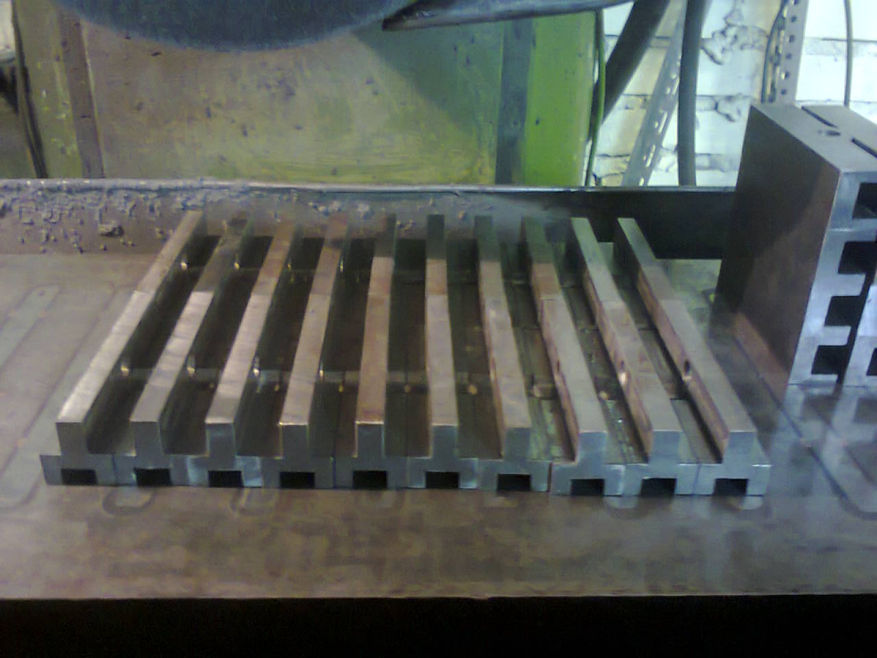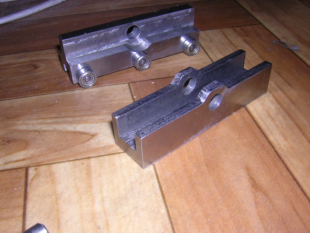 На какое-то время проект был заброшен. И вот подошло время его закончить. То, что было готово до недавнего времени Вот так ролики должны бегать внутри направляющей Предварительно рама была собрана ещё поздней осенью. Но из-за того, что раму с направляющими (на первых картинках) от сварки немного повело, то всю конструкцию немного подклинивало. Плюнул, разобрал до лучших времен. И вот недавно немного подфрезеровал места, которые затирали и мешали свободному движению. Теперь подошло время сборки. Подфрезеровал немного боковины. Спереди-сзади поделал шкребки из прозрачного пластика, чтоб случайно попадающая грязь, песок, убирались в сторону Подфрезеровал ответные детали. Они уже вварены между труб 20х40. Для сборки тоже пришлось делать кондукторы, слава богу всё собралось ровненько Обратная сторона сборки Вот такие железные палочки получаются Для того, чтобы роликовые блоки нормально заезжали в раму, одна сторона блоков всё время подпружинена. При заходе блок получается сразу немного поджат колёсиками вверх Подпружиненный просто в висячем положении выглядит вот так Наконец все установлены Примеряю обрезок направляющей, подшипнички крутятся, шкребки гребут