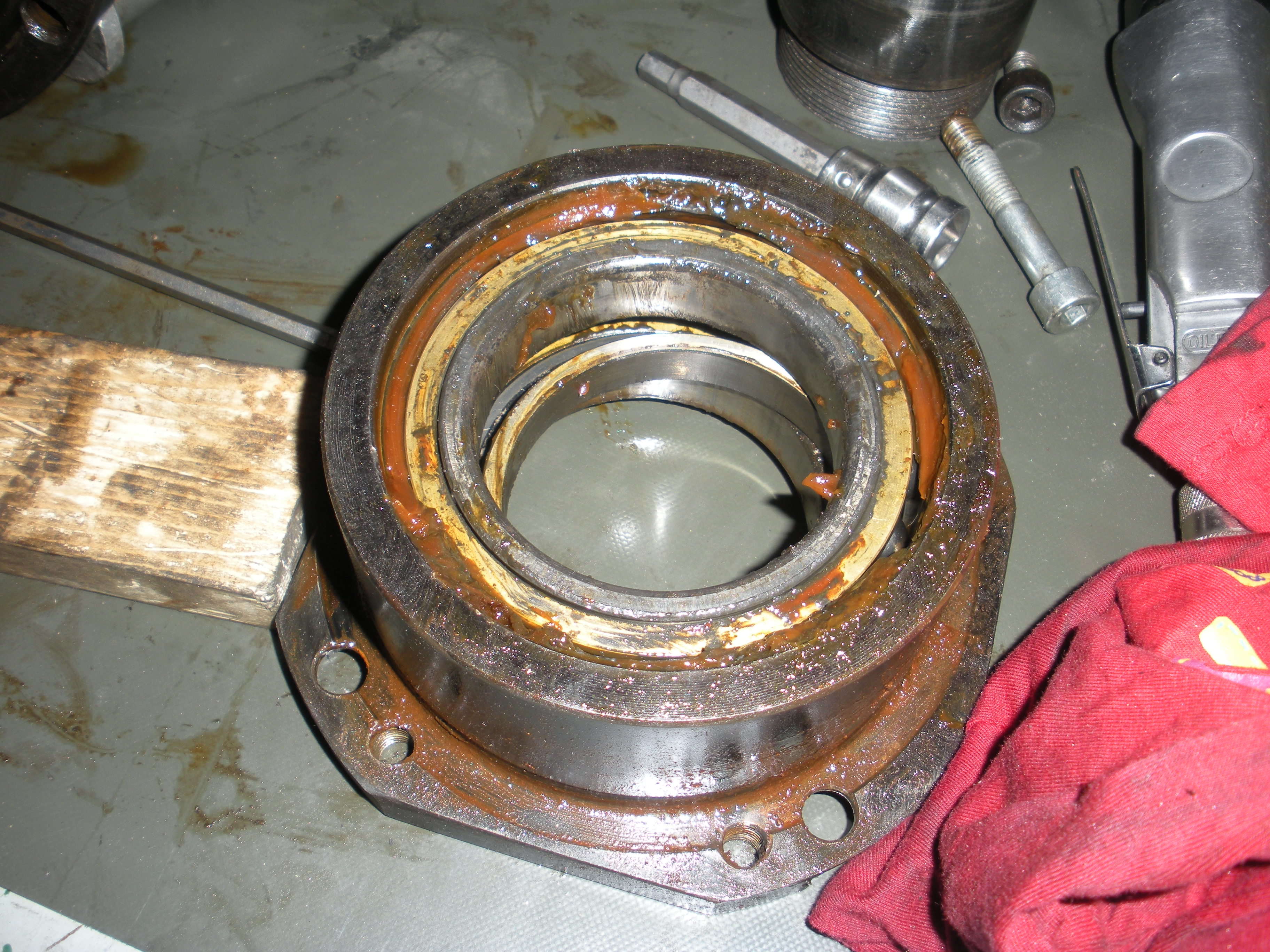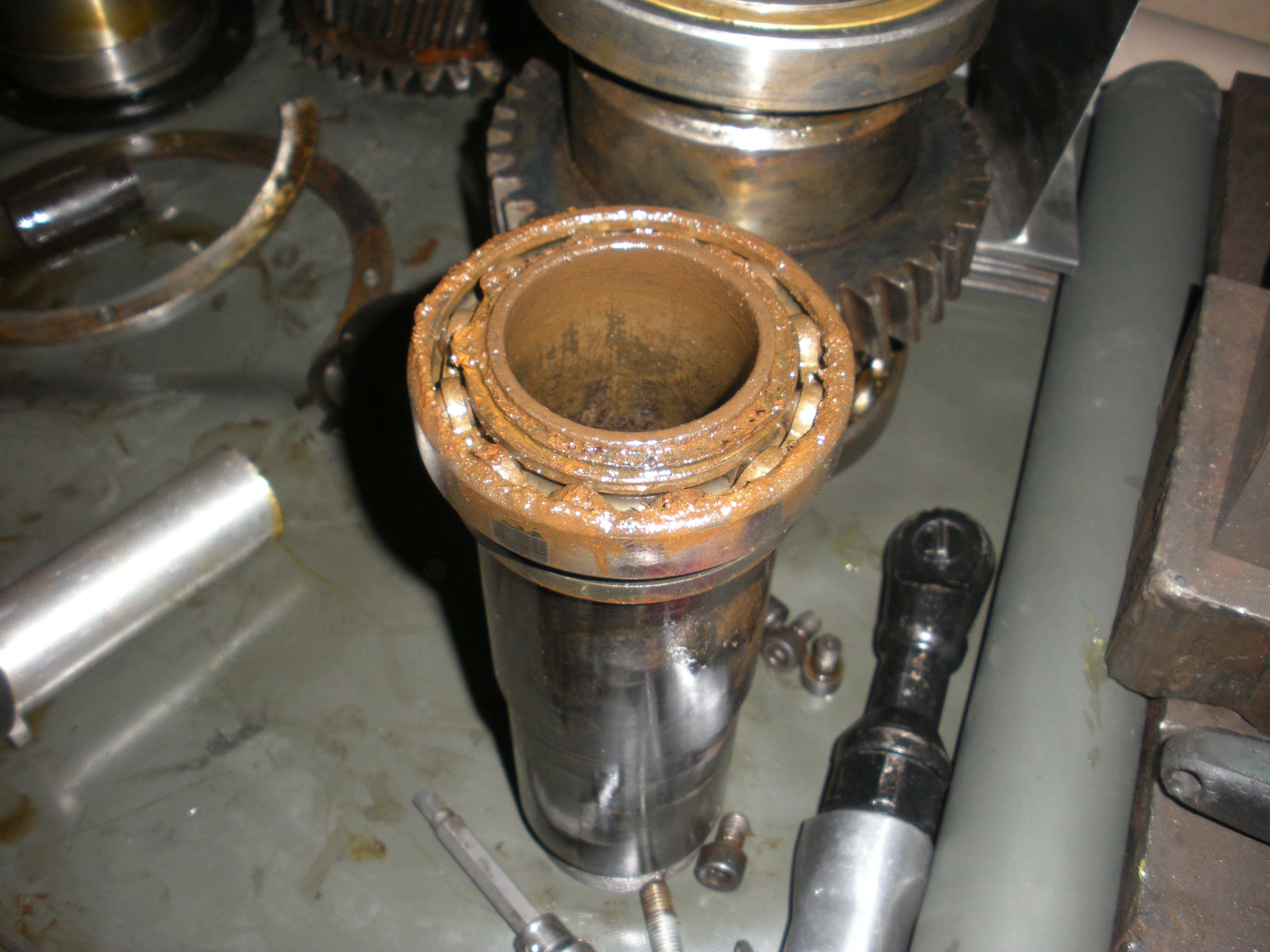Изначально шпиндель немного гудел, после стало еще хуже, вибрация, писк, разобрал, а там... Подшипники ржавые, без смазки, один из радиально-упорных не правильно стоял, шестерни гуляли вдоль оси.