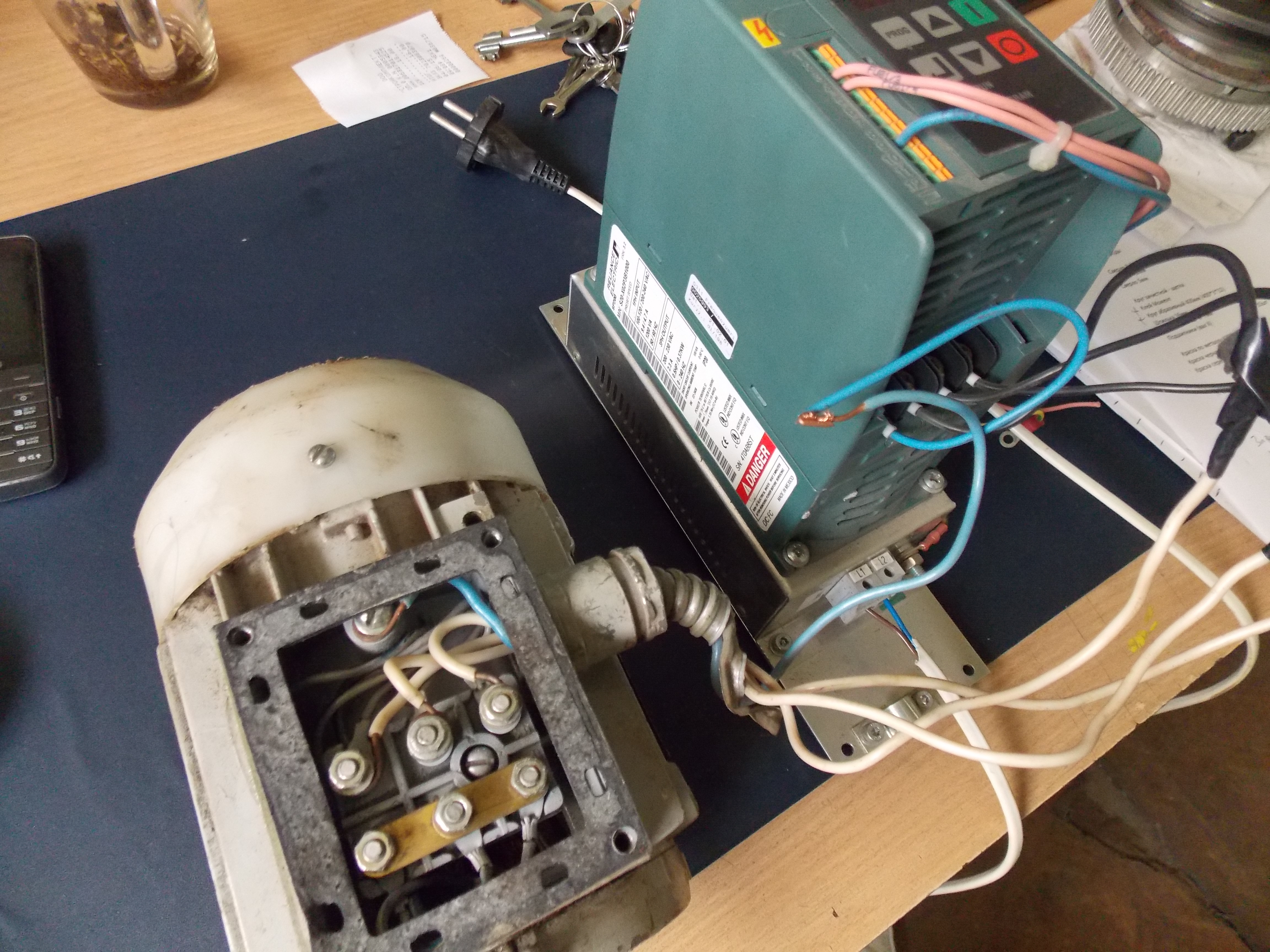 Частотник то однофазный посмотрите на шильде движка что написано какой он треугольник звезда 220/380 вольт. Если оно так то проверте соединение на двигле если как на приложенной картинке то у Вас перепутано подсоединение у Вас на картике звезда а нужно треугольник т.е. соединить начала и концы обмоток фаз