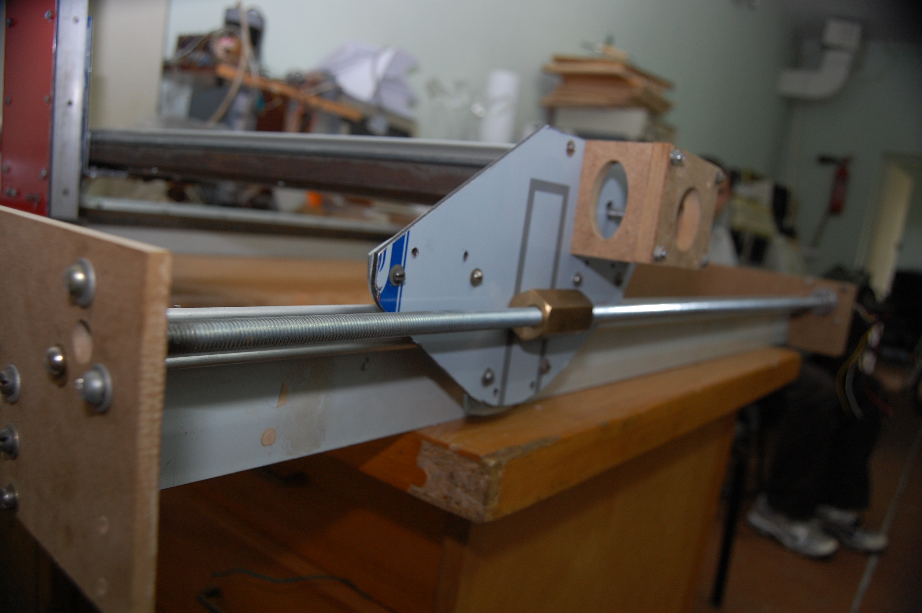 Сразу у препода появилась мысль по поводу переделки конструкции. Ну а пока все сохнет, решили поделать фото для большей наглядности. Вашему вниманию фото поклейки, муфт, каретки на ось Х, и сама ось У (механика взята с матричного принтера).
