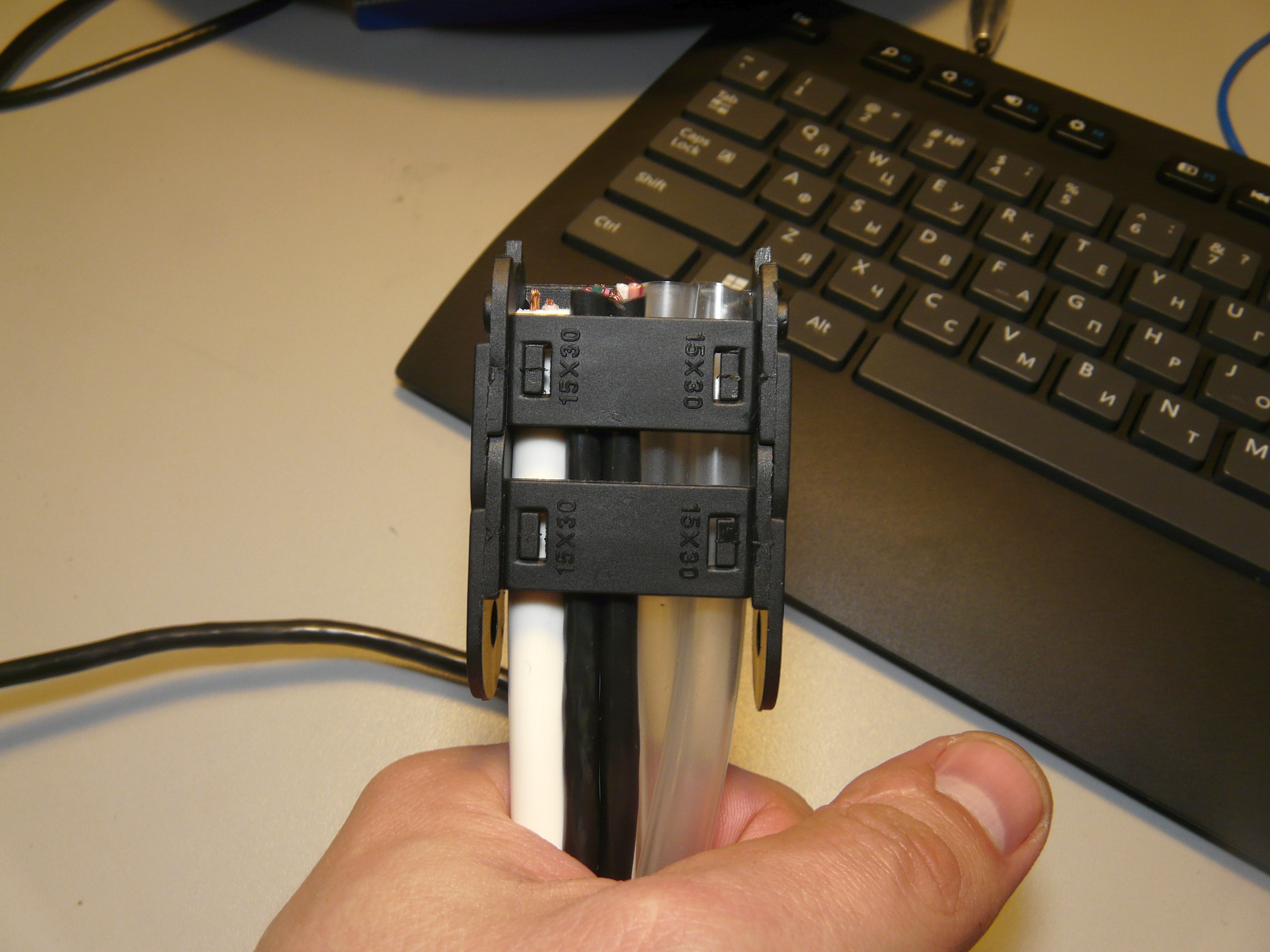 Крайне доходчиво. :) В 15х30 кабелям явно тесно, а вот в 18х37 кажется уже нормально. 22 х 38 мм ещё на четверть попросторнее будет.
