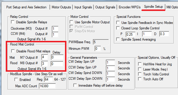 laren32 писал(а):Даже на вкладке Диагностика в Масн3 при нажатие кнопки Spindle M3 - загорается соответственная лампочка напротив Output1, а при нажатие кнопок Flood M7 и Mist M8, загорается и там и там Output6.