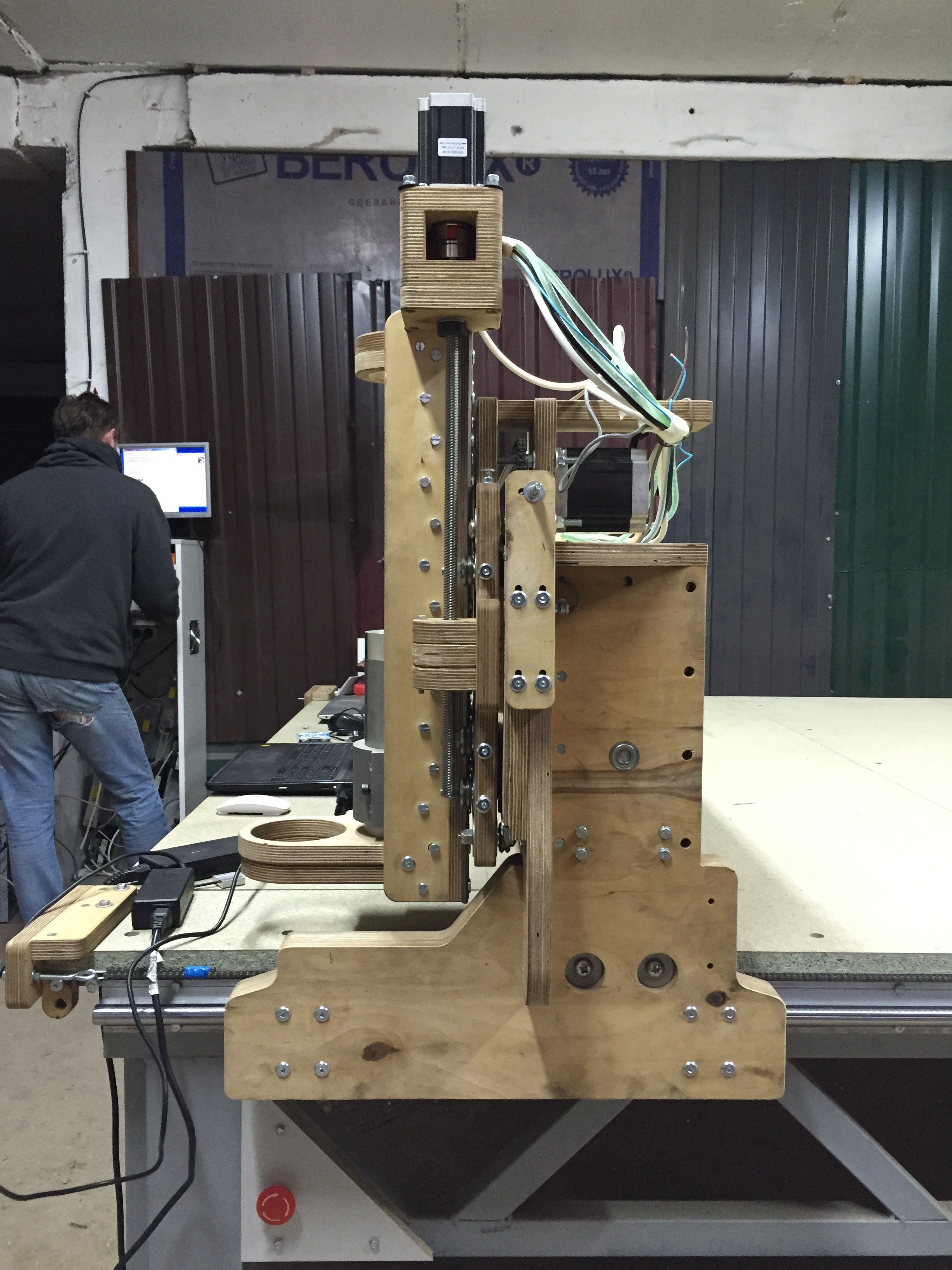 По механике тоже выявилось слабое место. И это не фанера. Как я и подозревал, шестеренки привода Х оси маловаты для таких динамических нагрузок. Один раз сорвало с места одну. Пережал заново, пока работает, но доверия к этому месту немного.
