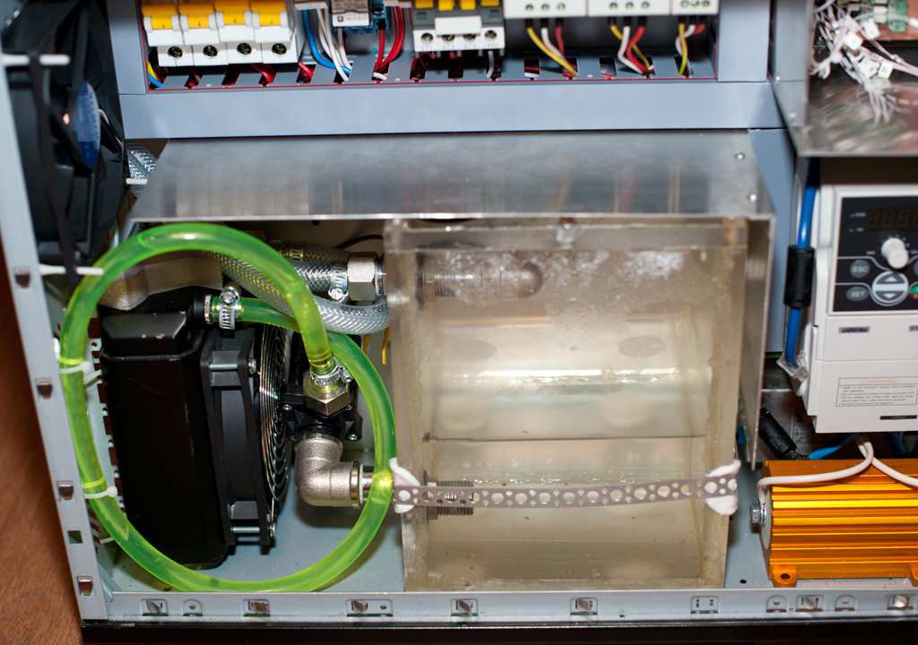 Водоблок тоже разместил в стойке, вариант не самый лучший конечно...