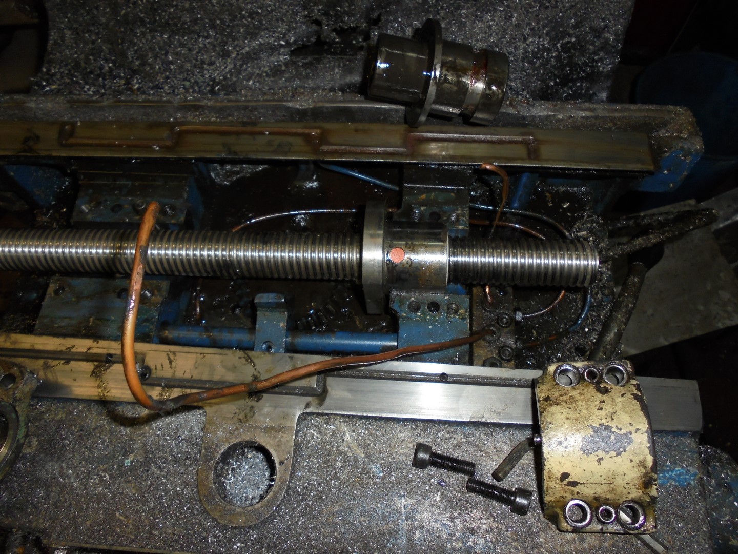 Будем ставить ШВП 3205 на Х. Думал ШВП проблемно поставить много там всяких хитрых железок было. А выяснилось что гайка ф50мм садиться как родная в станину и достаточно закрутить хомут(желтым) и усе готово :hehehe: Нужно только концы ШВП проточить, имея токарный ЧПУ который умеет точить любую резьбу стало намного проще ;)