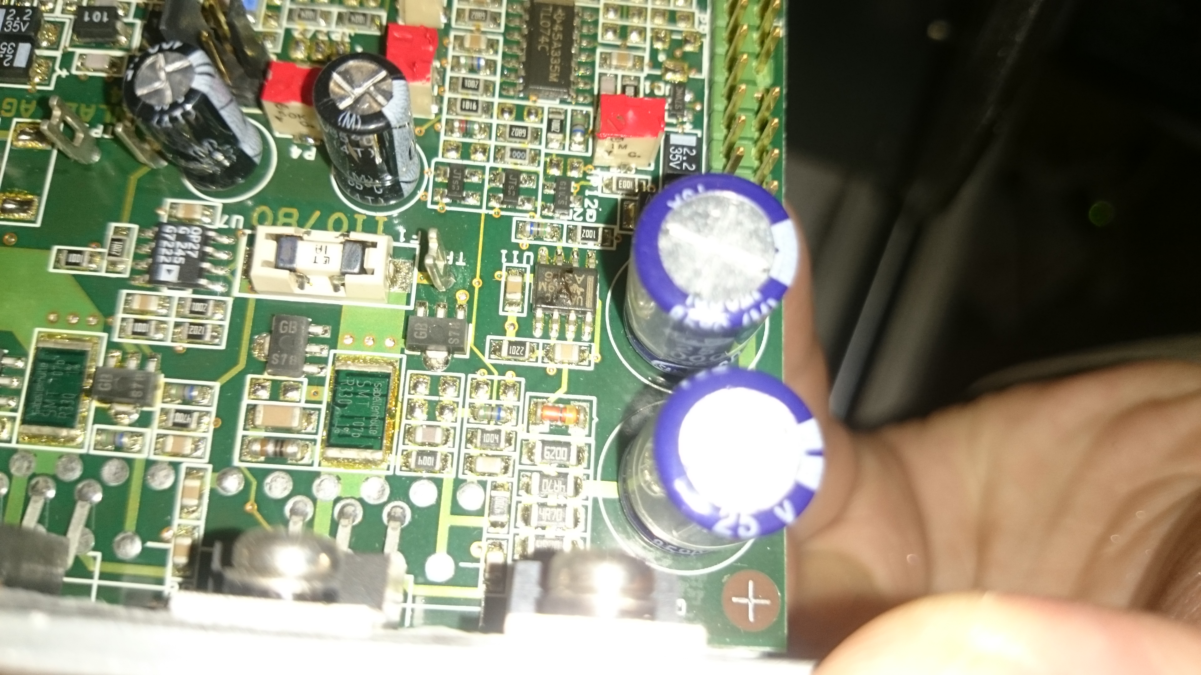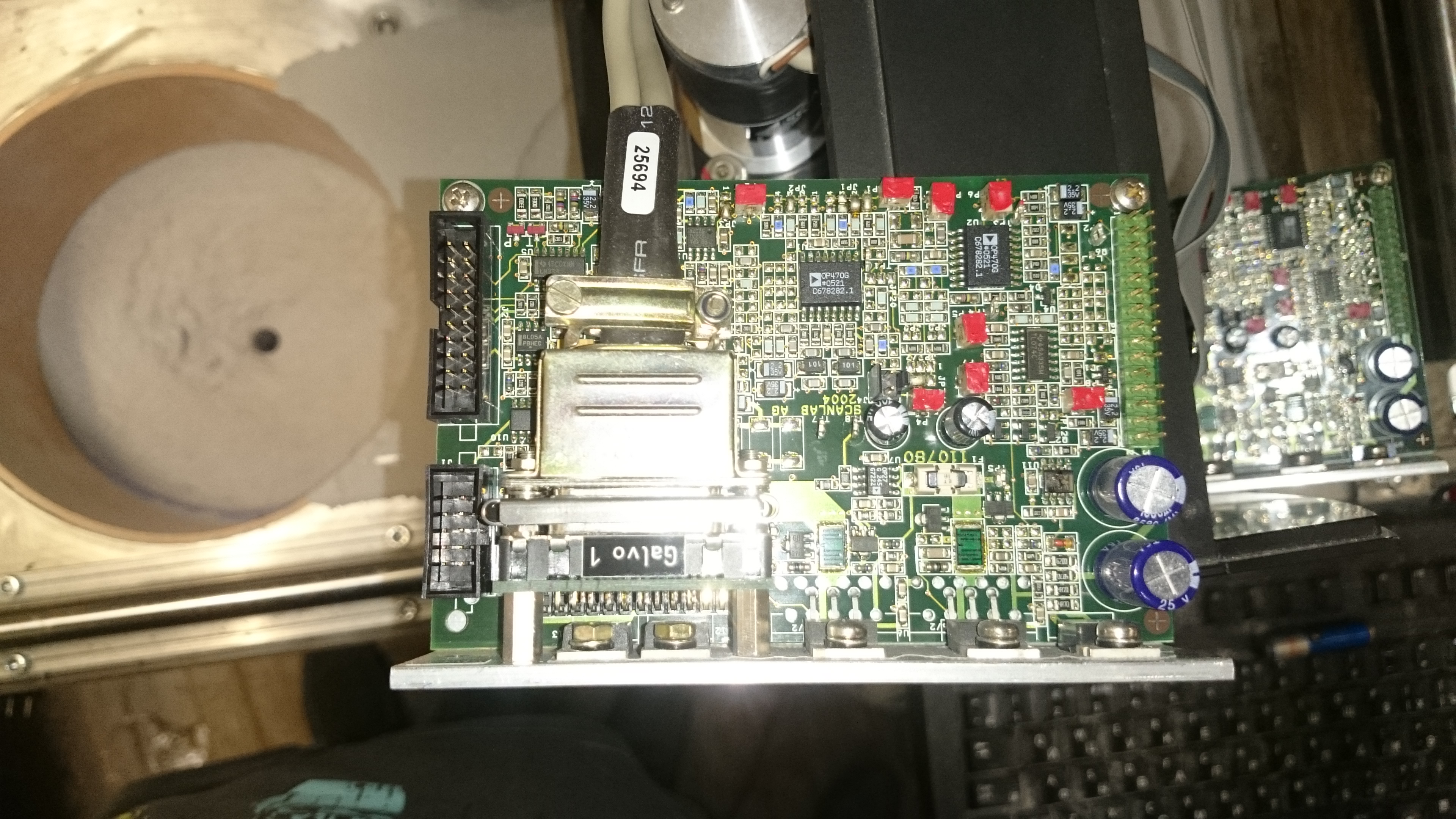 После вскрытия обнаружили на обоих платах гальвонометров обоих осей сгоревшую детальку. На одной слегка видно маркировку.