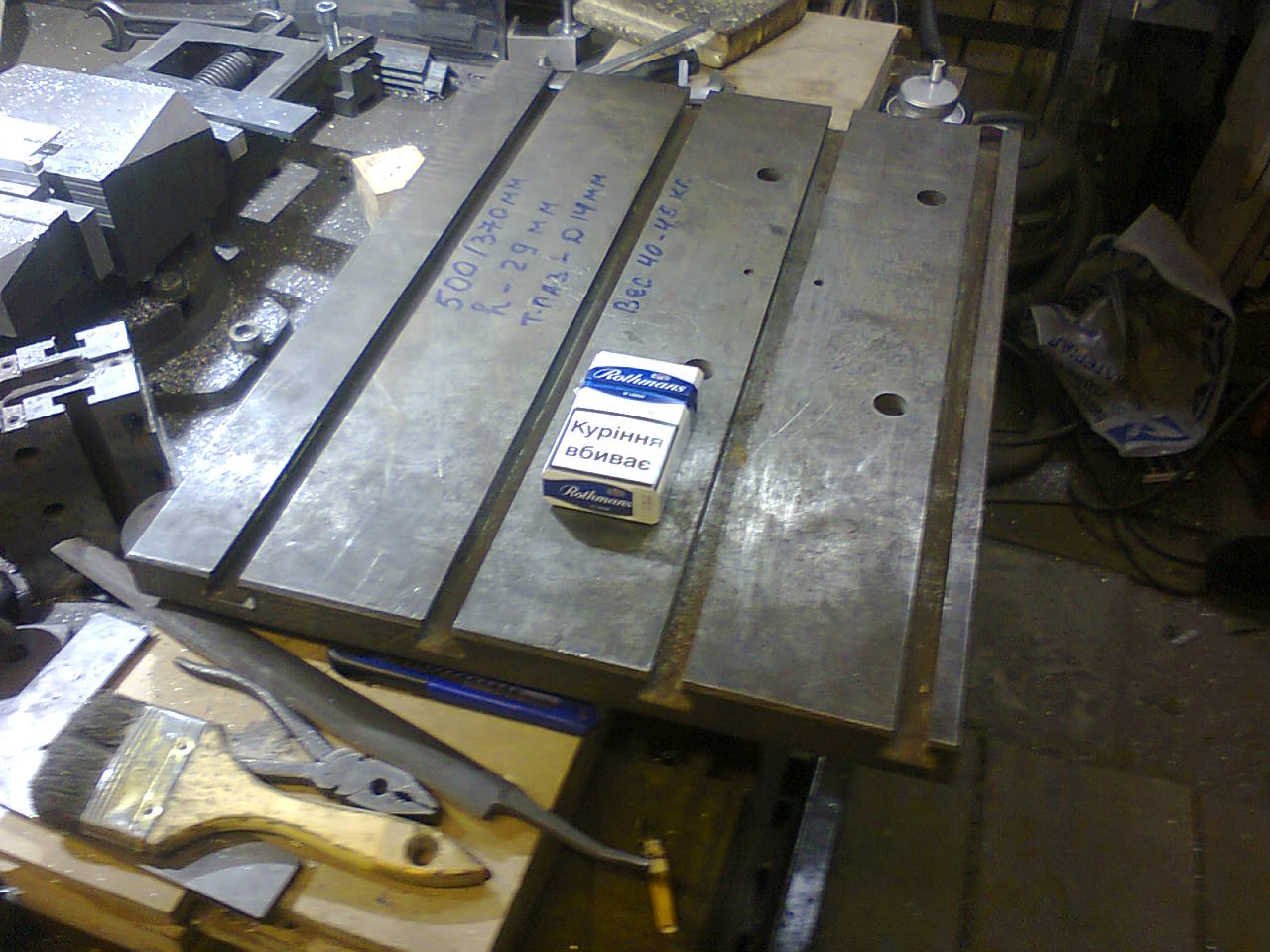 Снова я со своими безумными идеями. Есть кое-какие подвижки, посему можно продолжить. Подшаманил кой-чего у станка в Солиде, но на данный момент это не принципиально. Собственно, весь вопрос продолжения проектирования застопорился из-за стальных переходных плит 500х100, которые должны установиться направляющие шпиндельной бабки. В одном месте хорошие люди промуфлонили мне почти три недели, но таки металл отрезали. По металлу сознательно остановился на Ст3, т.к. она вязкая и пластичная. Учитывая, что наращиваться будет чугунная станина, материалы по свойствам приблизительно одинаковые. Даже если металл со временем захочет деформироваться, то он не покрутит мне станину, во всяком случае это я так себе предполагаю. Вот такие вот славные железяки вышли, две плиты 150х400 под крепежи двигателей, и две 500х100 под подкладки направляющих. Толщина всех железок 30мм.