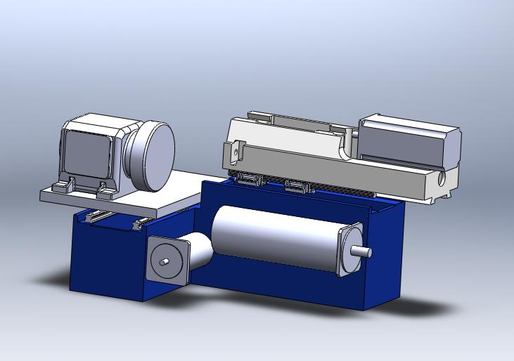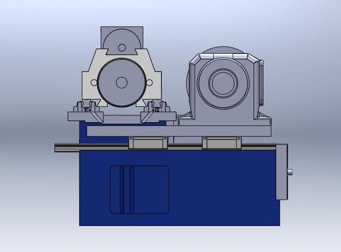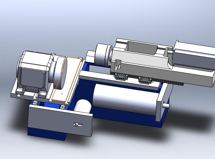 Потихоньку начинает срастаться. Покрутил модельки моторов. Вариант через ремни устраивает. При этом моторы разворачиваются на 180 к внутренней стороне станины. Там они в любом случае будут закрыты кожухами защиты из стальных листов и общая площадь станка сохраняет свою компактность. Вот, кстати, второй моторчик.