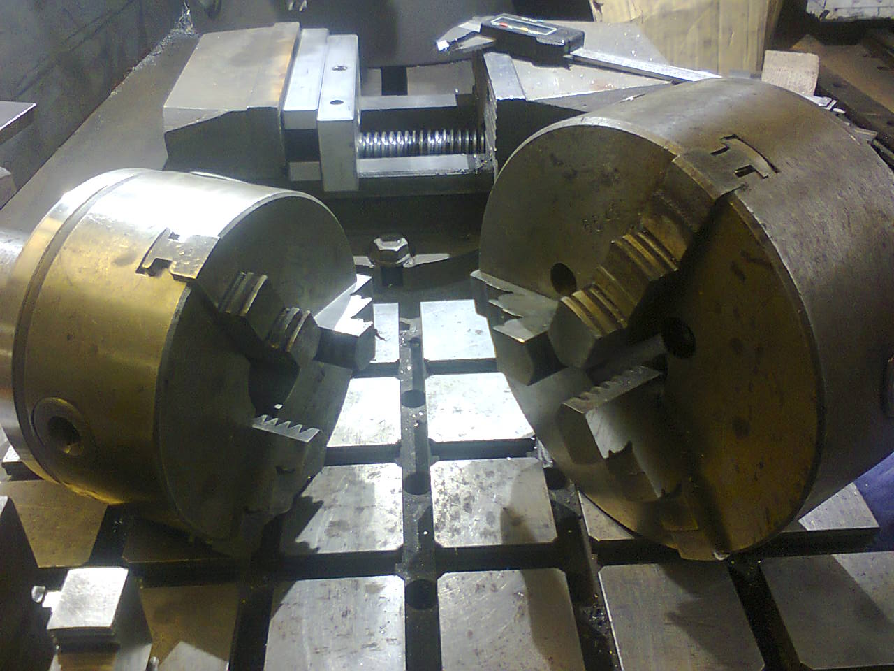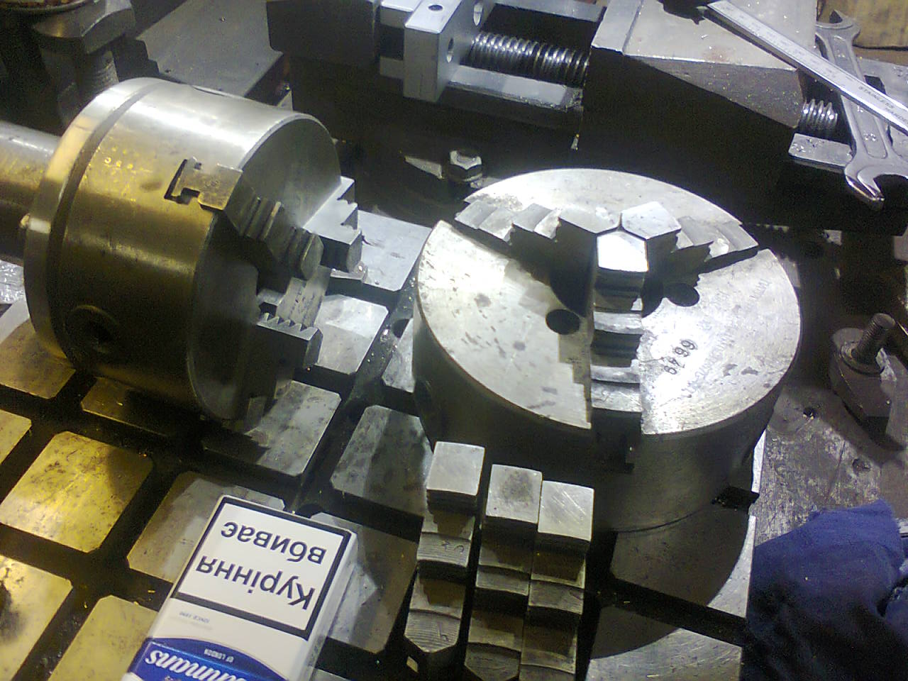 Отдельное спасибо Мише Aegis. Общими усилиями пришли к оптимальным выводам по работе с токарными патронами. В итоге было принято решение отказаться, как задумывалось изначально, от пневмопатрона (там куча своих нюансов свзянных с проходным отверстием шпиндела и посадочным на КМ4). В итоге были докуплены пара патрончиков 130 и 160мм, не нулёвые, но комплектные и судя по состоянию улиток и кулачков, в работе не были