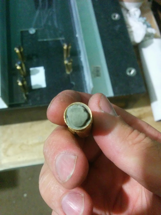 Режем на лазере шаблоны под установку закладных. В качестве закладных латунные анкеры MSA, в них вкручены установочные винты под шестигранник. Анкеры ставим на плиту через пластилин: