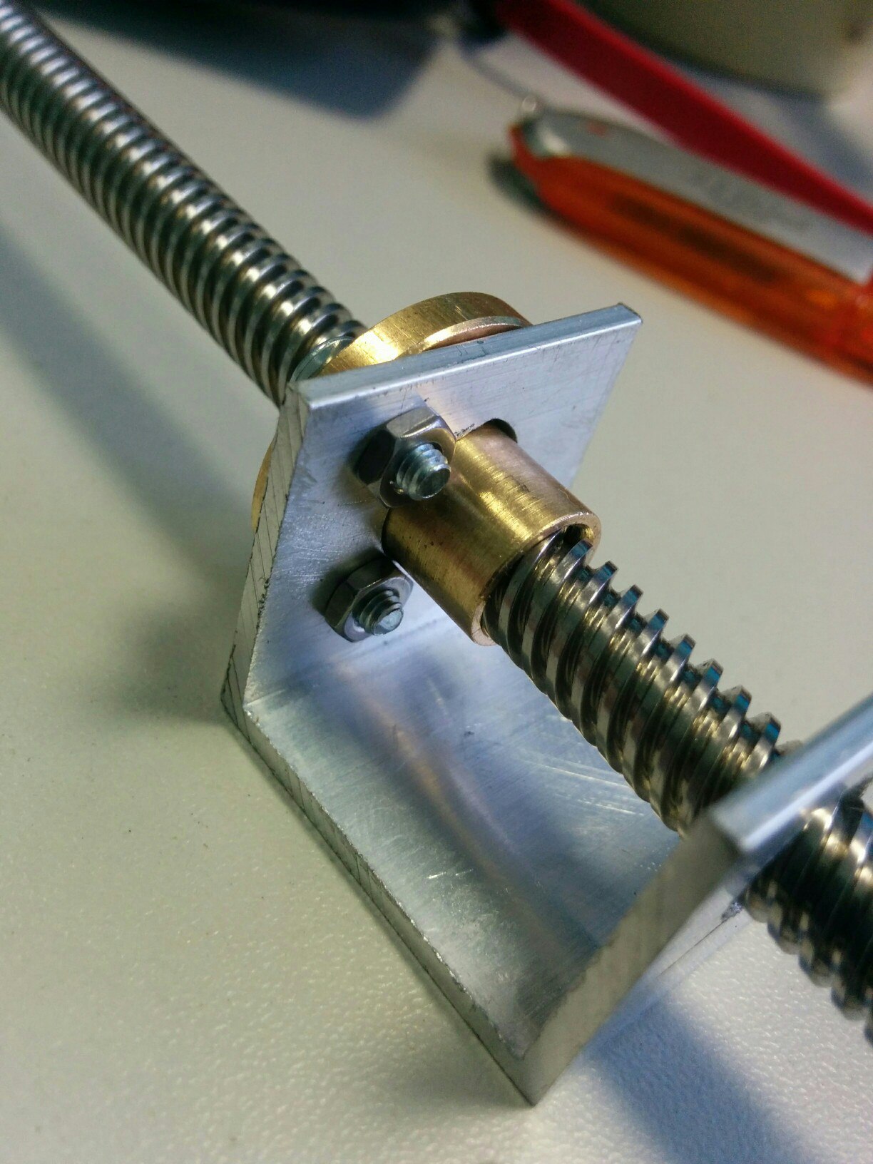 • Дать дельный совет по установке в эту конструкцию винтовой пары (шпилька М-8 + бронзовые гайки). Интересует вопрос крепления подшипников, которые будут держать шпильку.