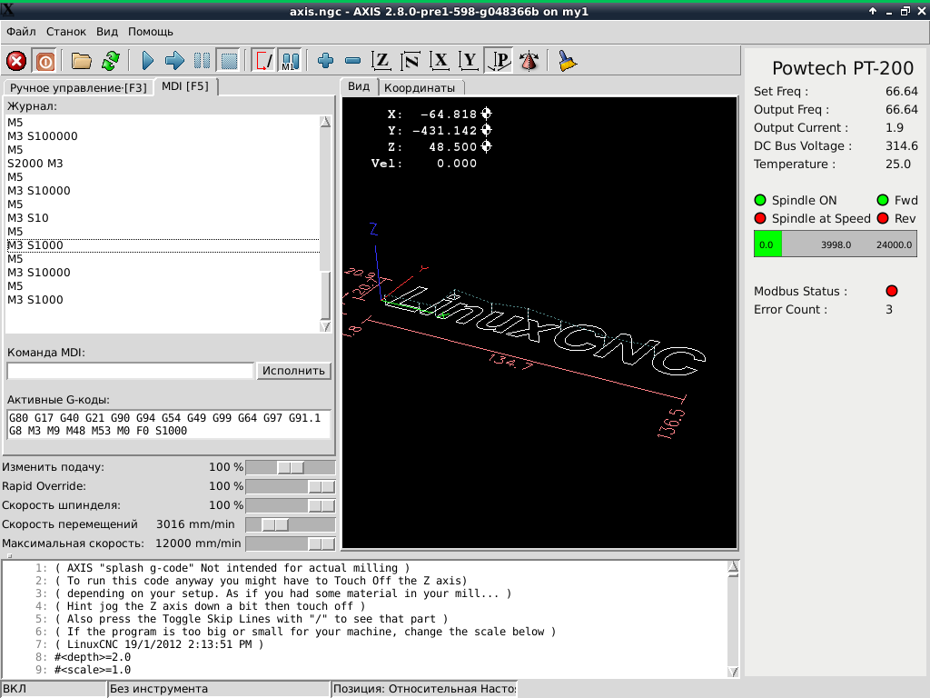 да правильные, но появляются только когда я захожу в меню частотника посмотреть ОООооо и лампочка шпиндель на скорости загореласьBentScrew писал(а):тоже корректные