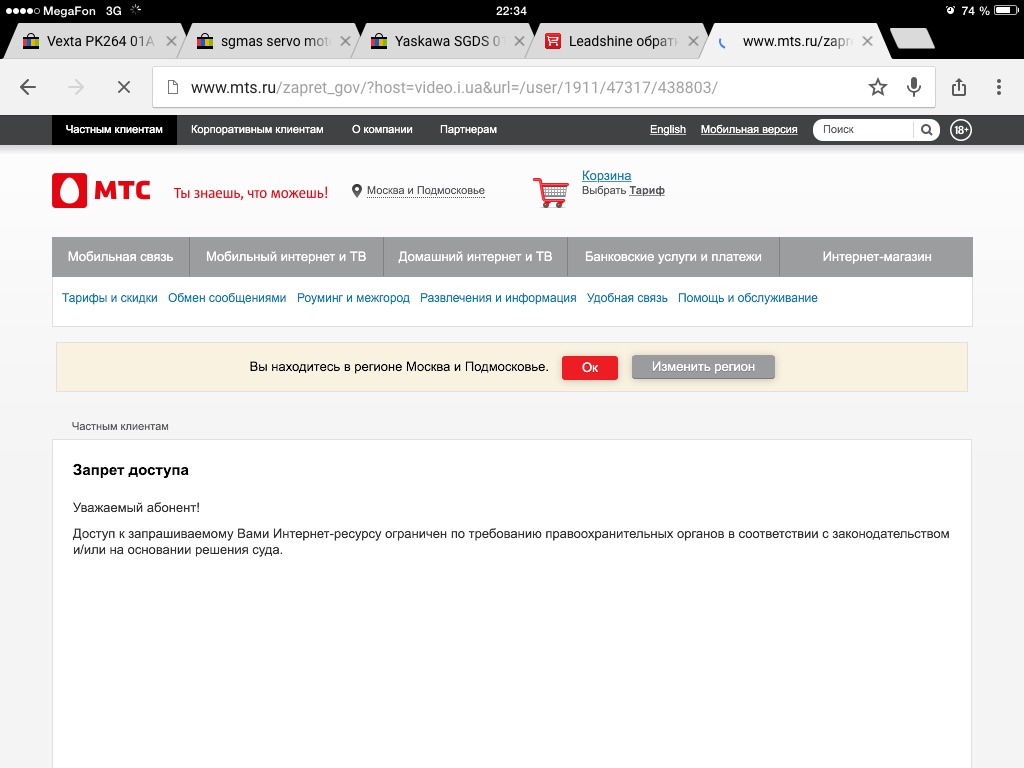 Вообще нечто странное, я лезу через Мегафоновский модем, а доступ мне, да и не только мне, запрещает МТС.