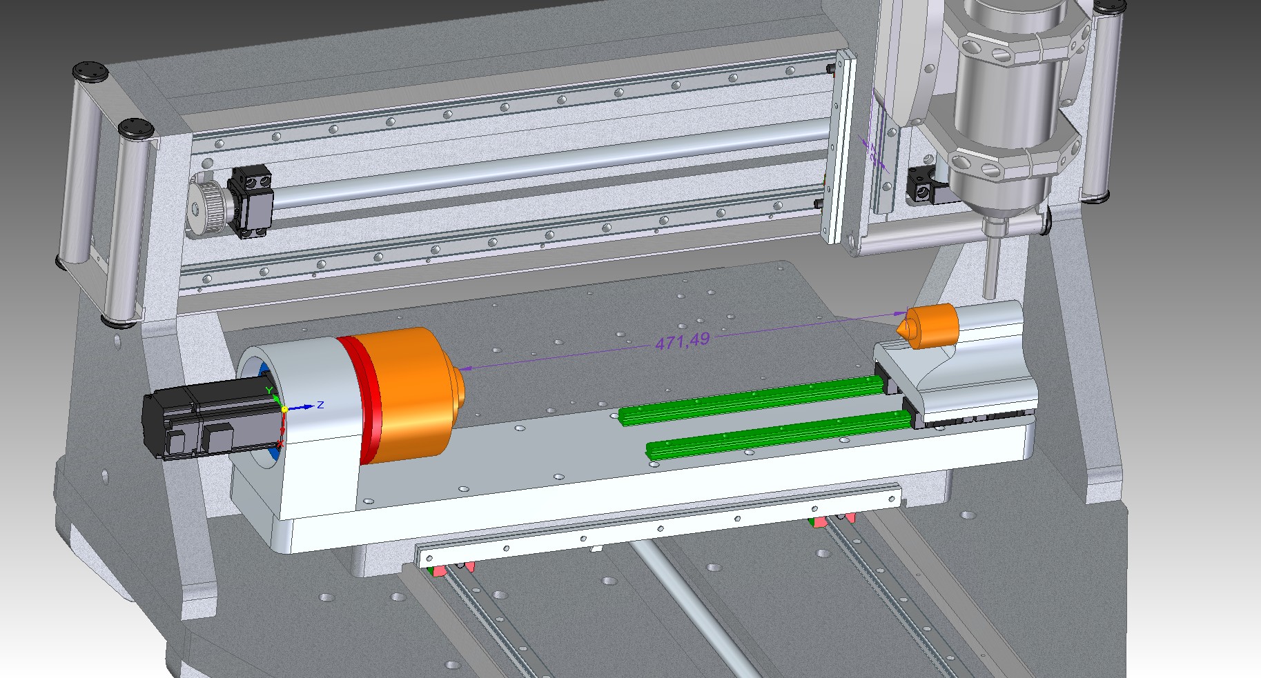 2 каретки зло даже небуду думать об этом уже есть опыт двух кареток. Вторая пара кареток расположена под центром и рмц не сжирают. Расположение 4й оси поперек стола плохо тем что в ширину стол всего 400мм и свисать будет больше рмц 400мм максимум поскольку ход оси 400мм. Свисающие концы в крайних положениях стола будут выходить за габарит станка и упиратся в будущий аквариум.