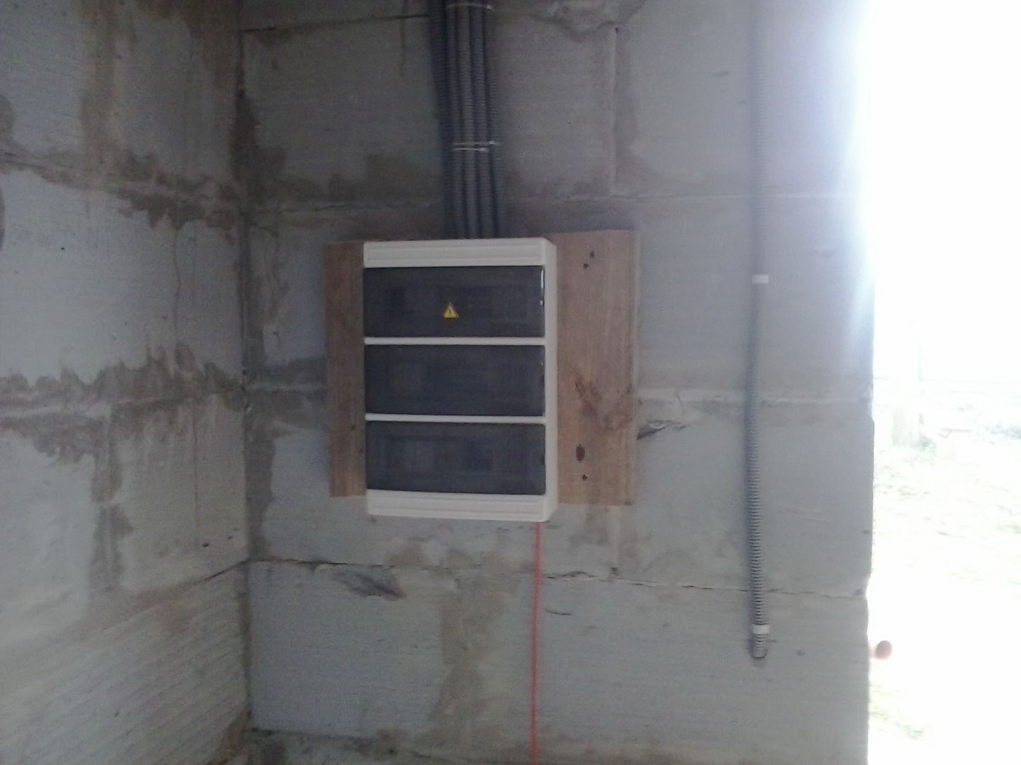 Ездили с братом делать электромонтаж, жилой комнаты 25м2 и коровника 45м2. Вдвоем, неспеша, сделали за три дня. Монтаж в трубе - это коровник, монтаж в гофре - жилая комната, которая будет обшиваться гипсокартоном. Все скрутки пропаял.