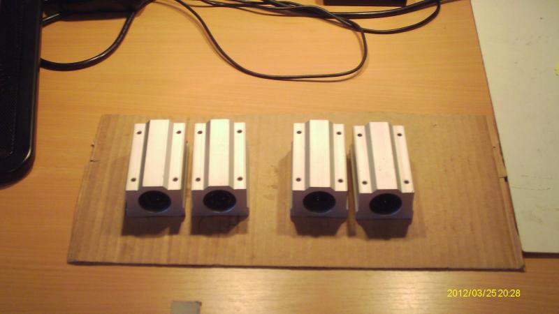 - заготовки для осей Х и У: 4 блока SC16LUU со вставленными попарно линейными подшипниками с внутренним диаметром 16мм (длина блока 85мм), цена 1 шт. 550р.