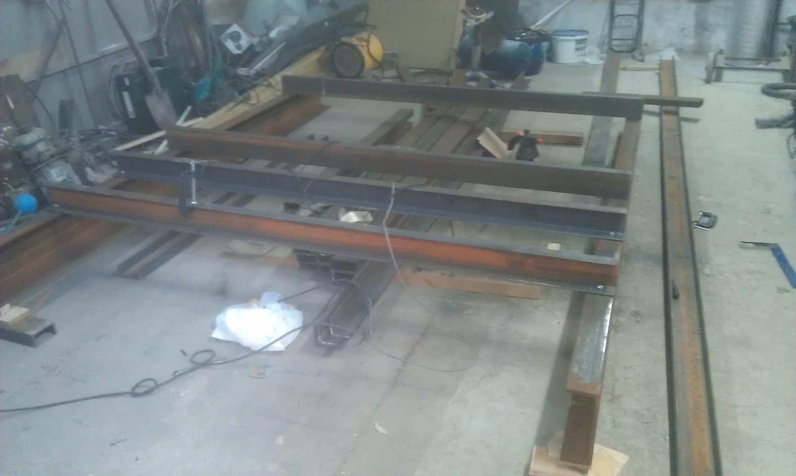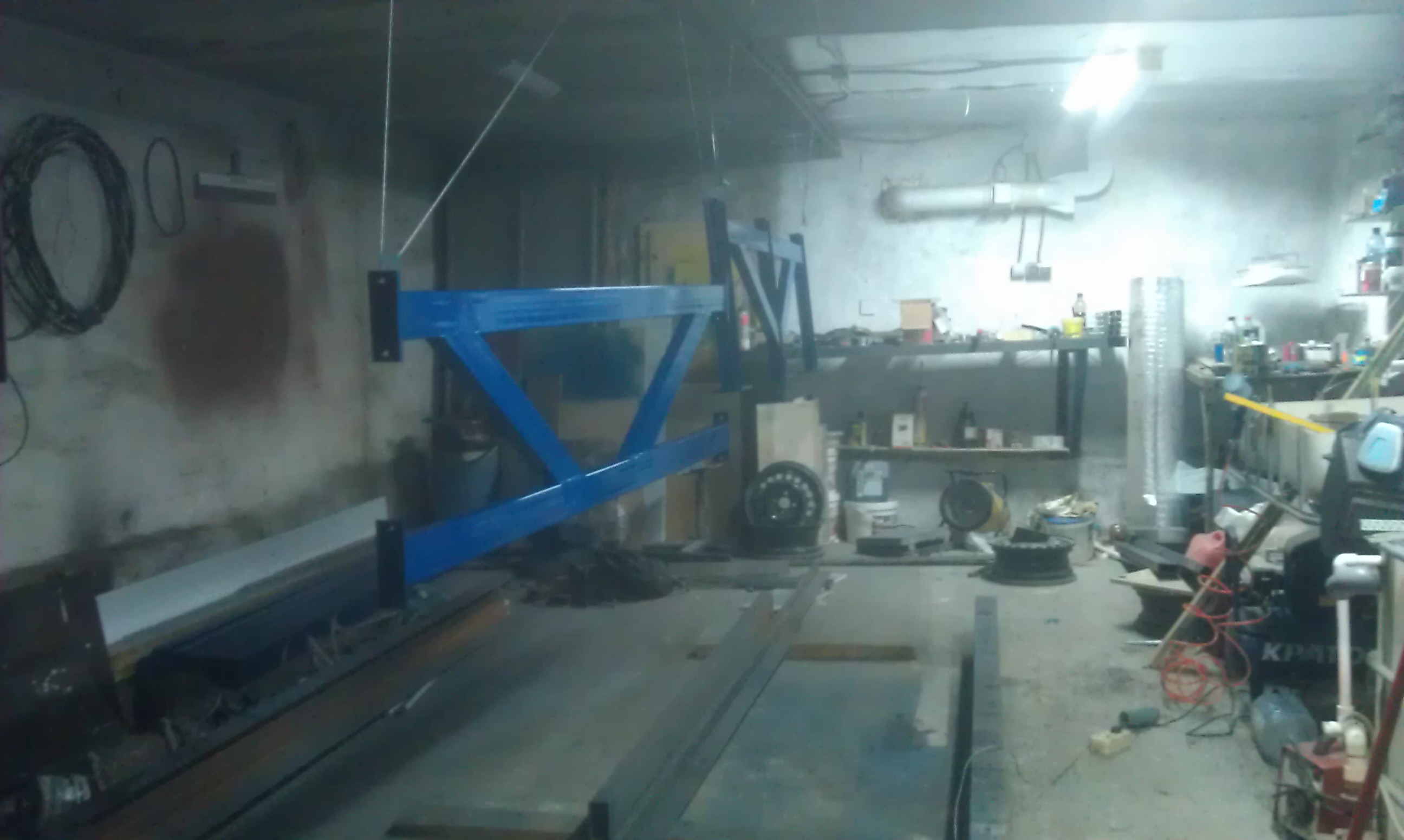 под потолком есть рельса, думаю к ней привязать и поднять станок, что бы залить платформу