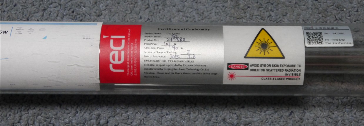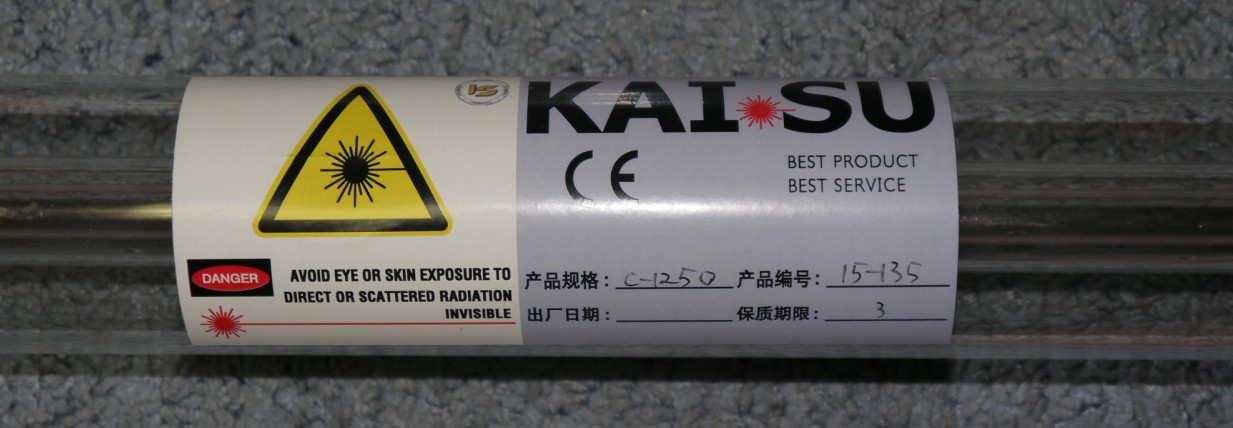 80 ватт "BillLaser". 1250 длинна 80 диаметр, по результатам измерений пиковая мощность 86 ватт, сайт производителя http://www.billlaser.cn// и http://en.bljg.cn/ . 24 тысячи.