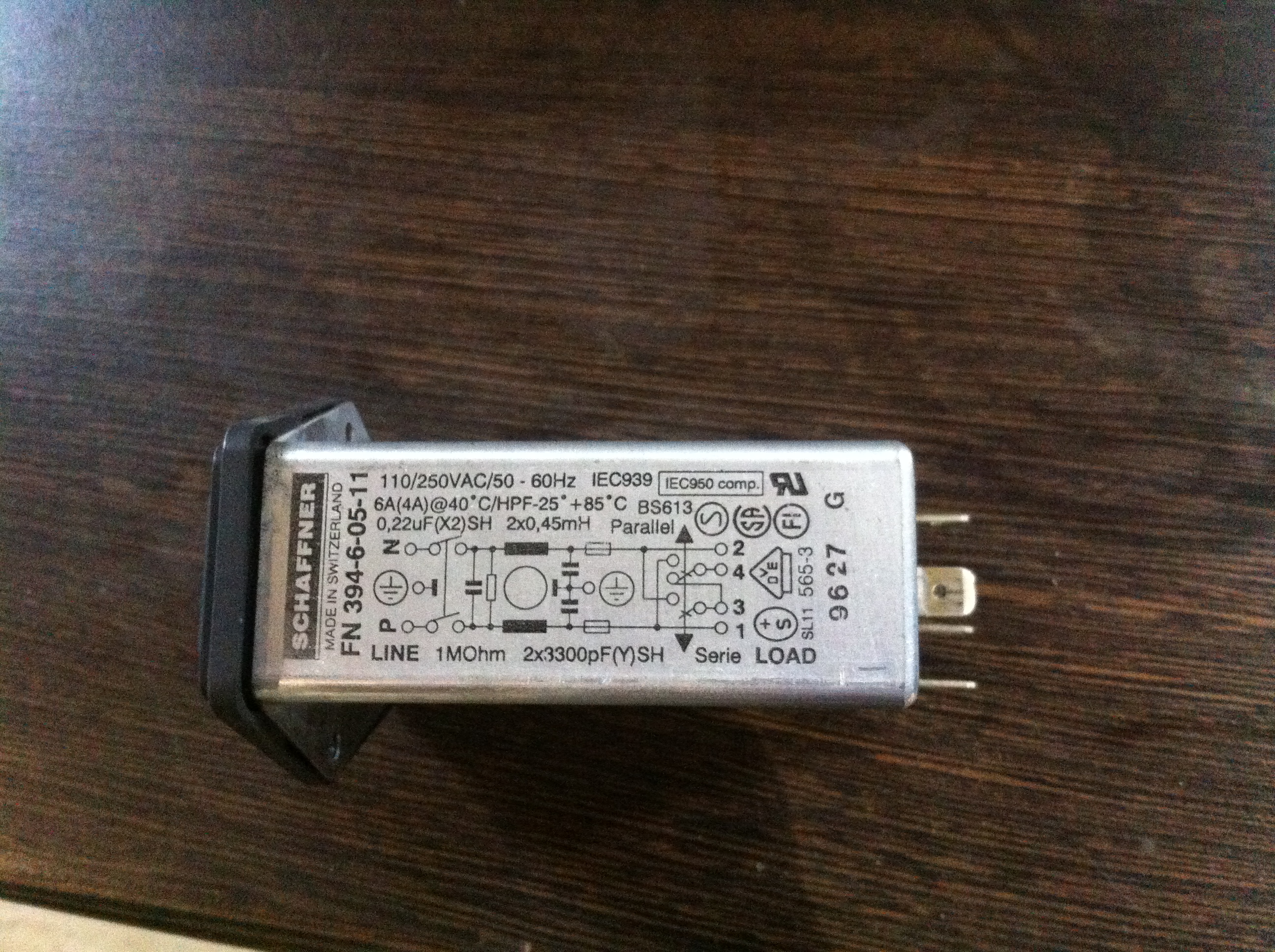 EMI филиьтр 250в 4а 1500р (швейцарский с кнопкой)